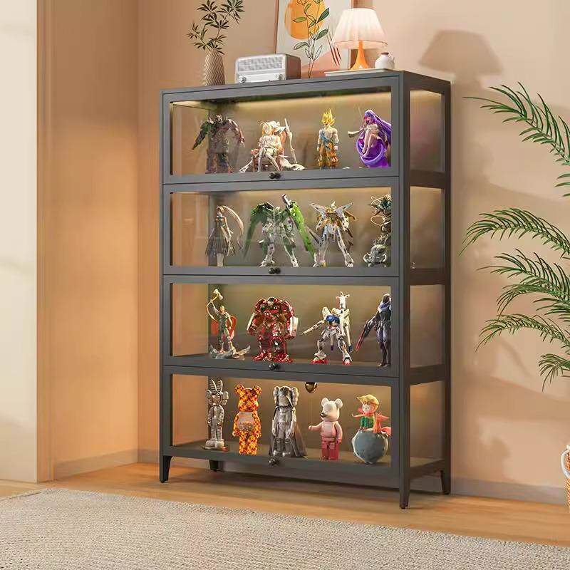 奶油风手办柜轻奢玻璃展示柜家用铁艺陈列柜玩具收纳柜收藏储物柜