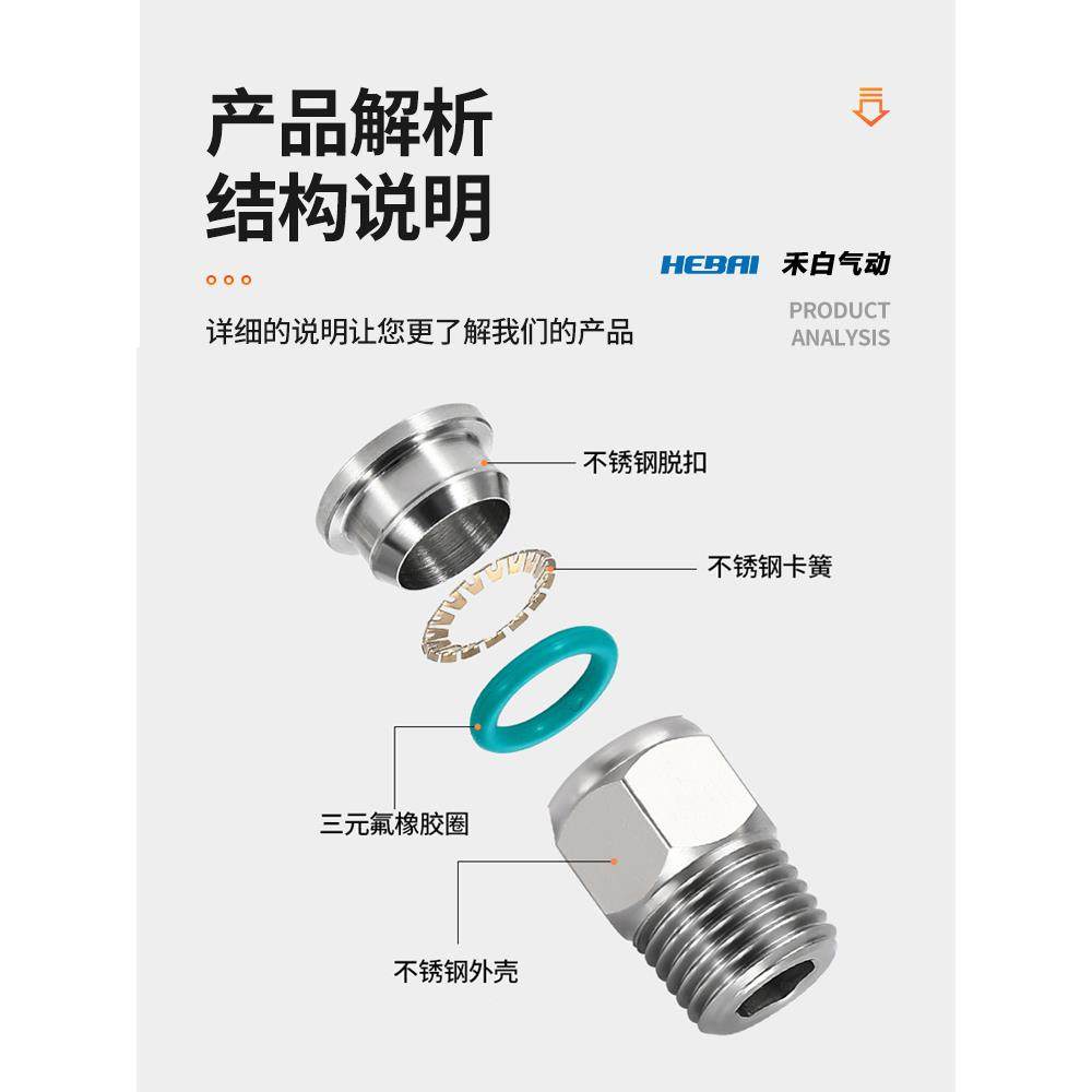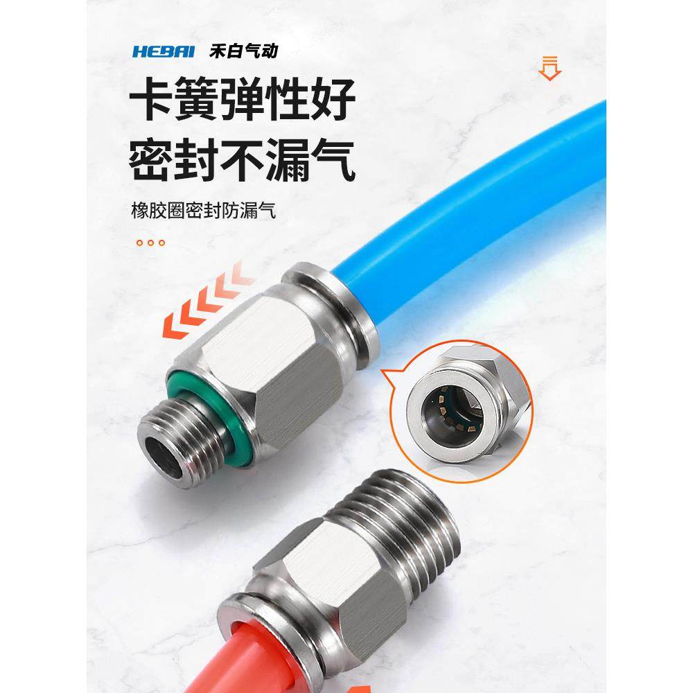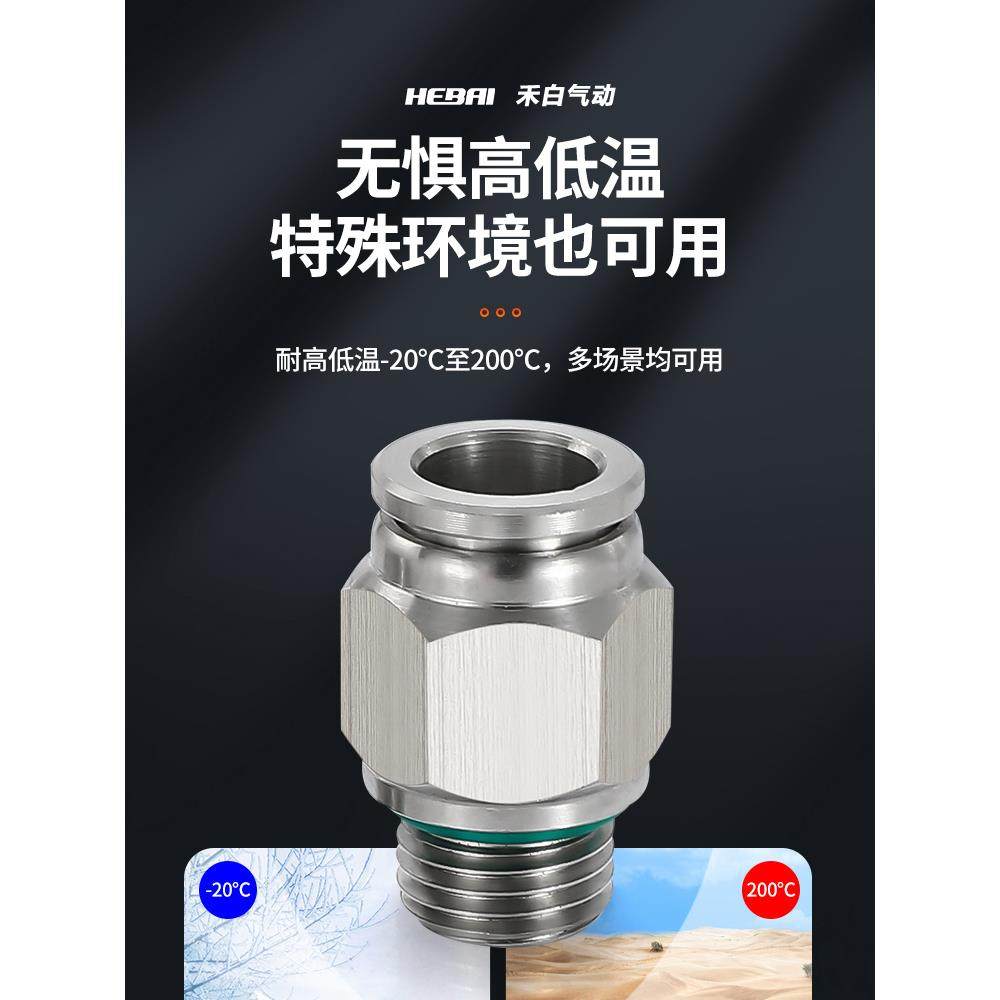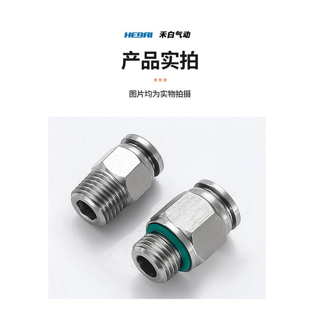 304不锈钢气动快速接头快插螺纹直通PC6/8/10/12/16-01/2分3/8-04