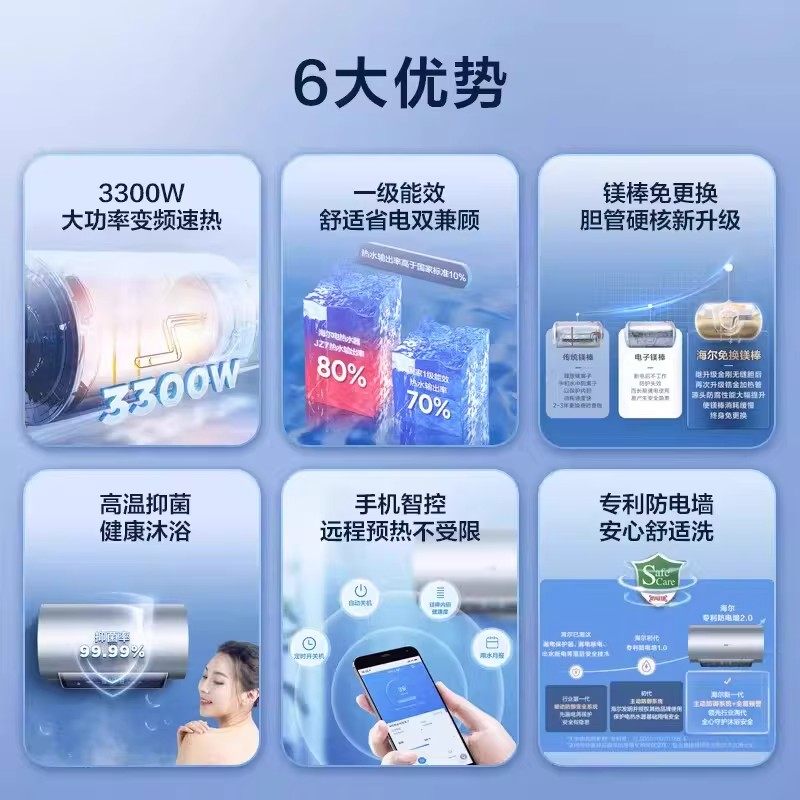 Haier/海尔EC8002-JZ7U1热水器80升3.3KW大功率镁棒免更换大水量