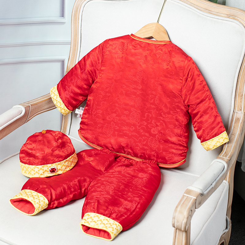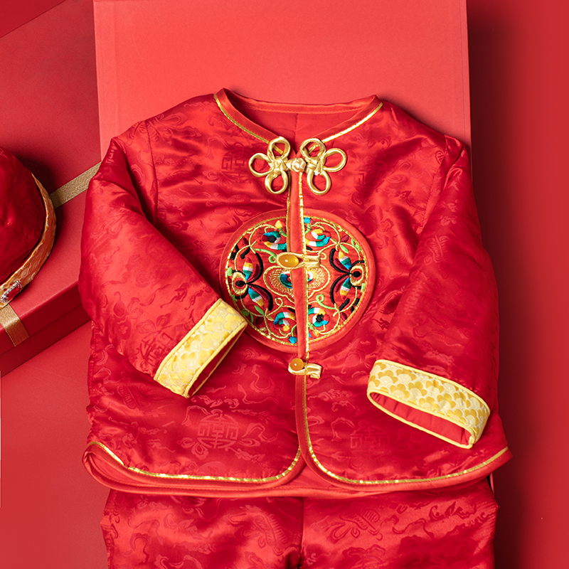 晨舞 男宝宝周岁礼服桑蚕丝抓周百天生日宴婴儿童拜新年中式唐装