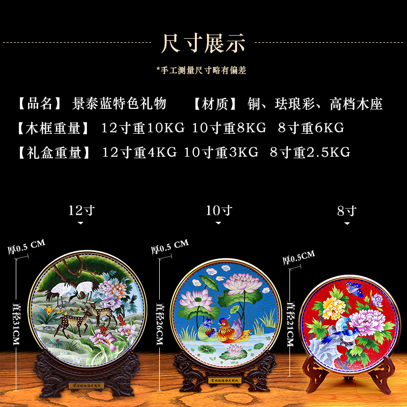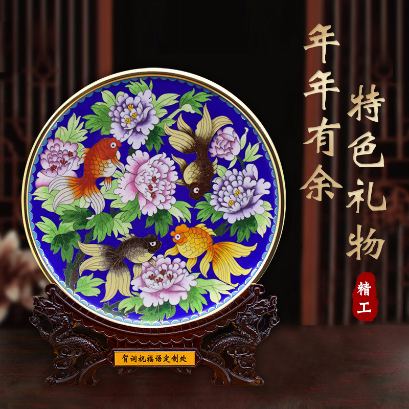 北京景泰蓝铜胎掐丝珐琅盘子摆件中国特色礼品送老外纯手工艺制作