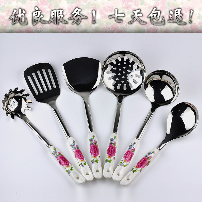 不锈钢厨具架陶瓷柄锅铲汤勺漏勺饭勺面扒打蛋器厨房烹饪用具散件