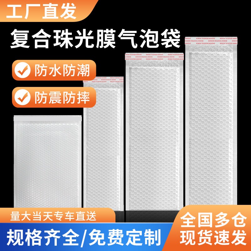 白色复合珠光膜气泡信封袋防震加厚泡沫泡泡服装快递包装袋子批发