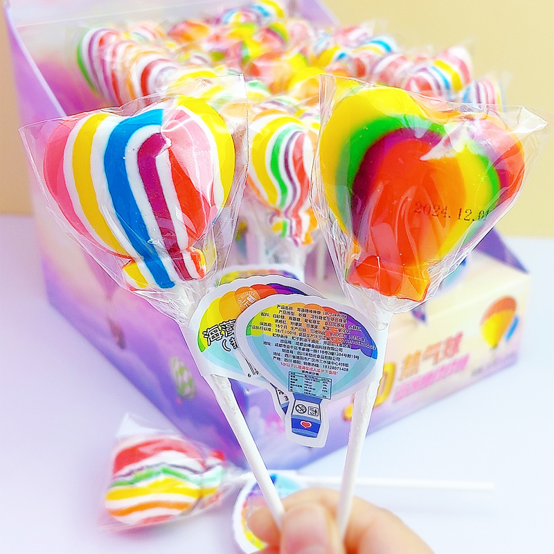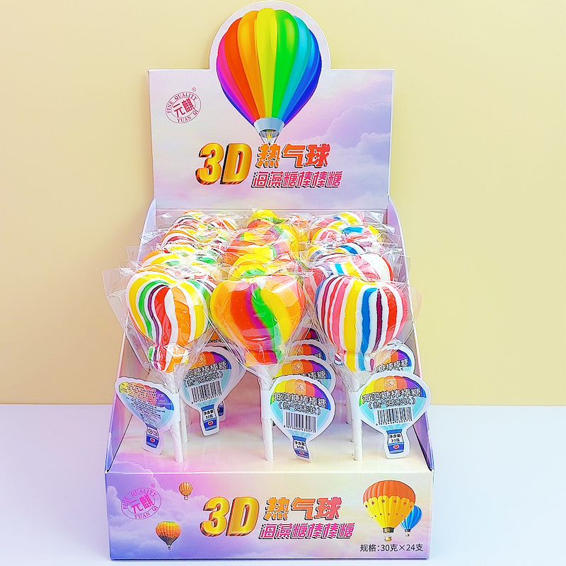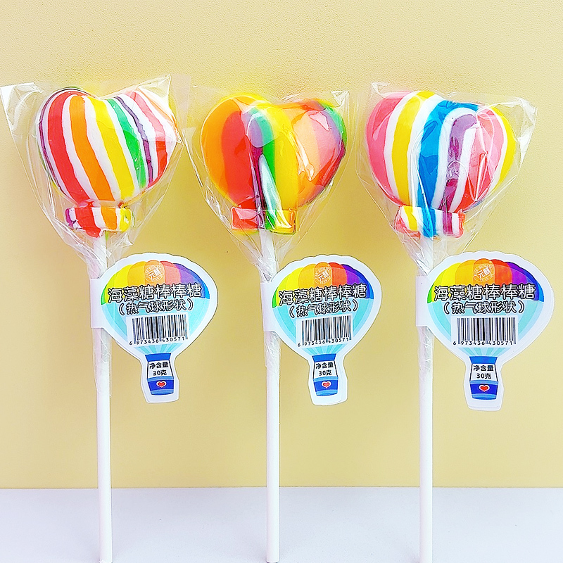 3D热气球造型海藻棒棒糖水果味彩虹糖果休闲零食儿童玩具糖果批发