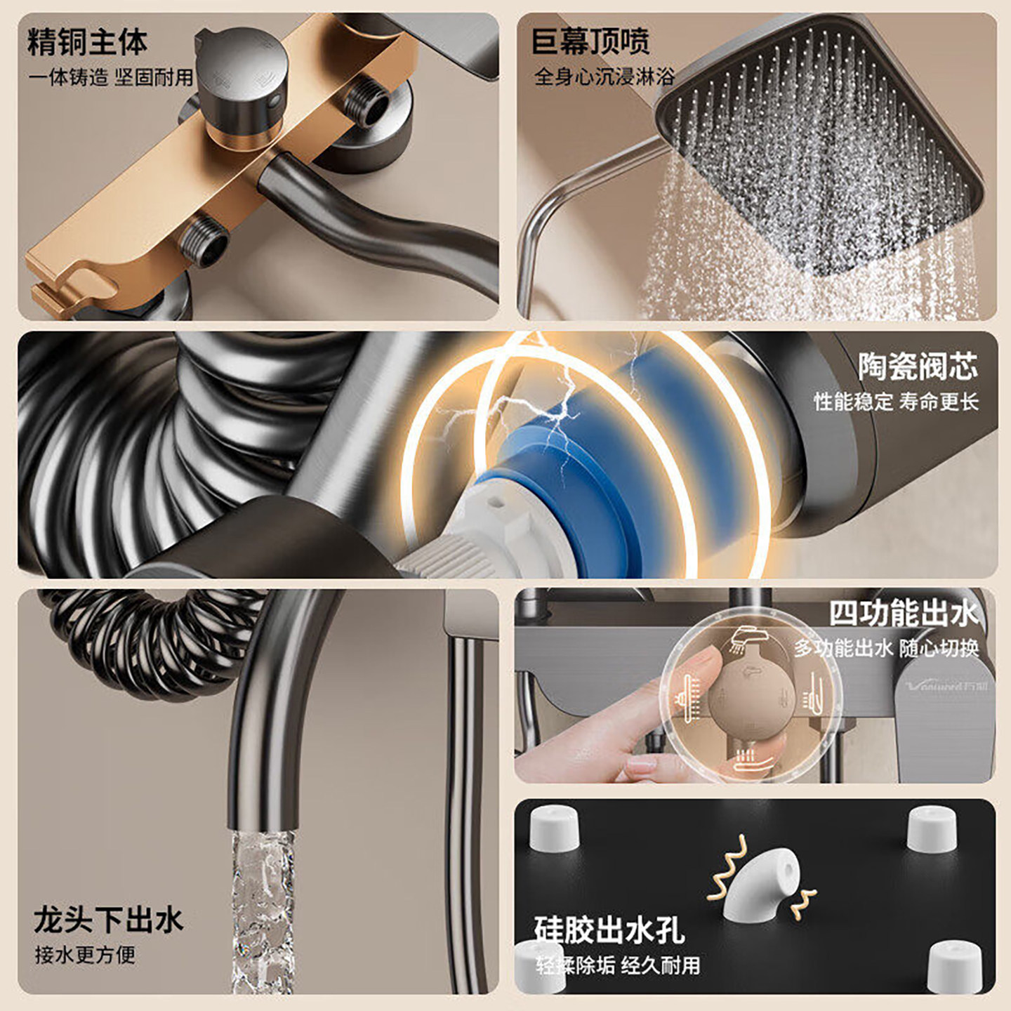 万和沐浴花洒套装增压喷头全铜主体简约家用增压淋浴冲凉恒温喷头