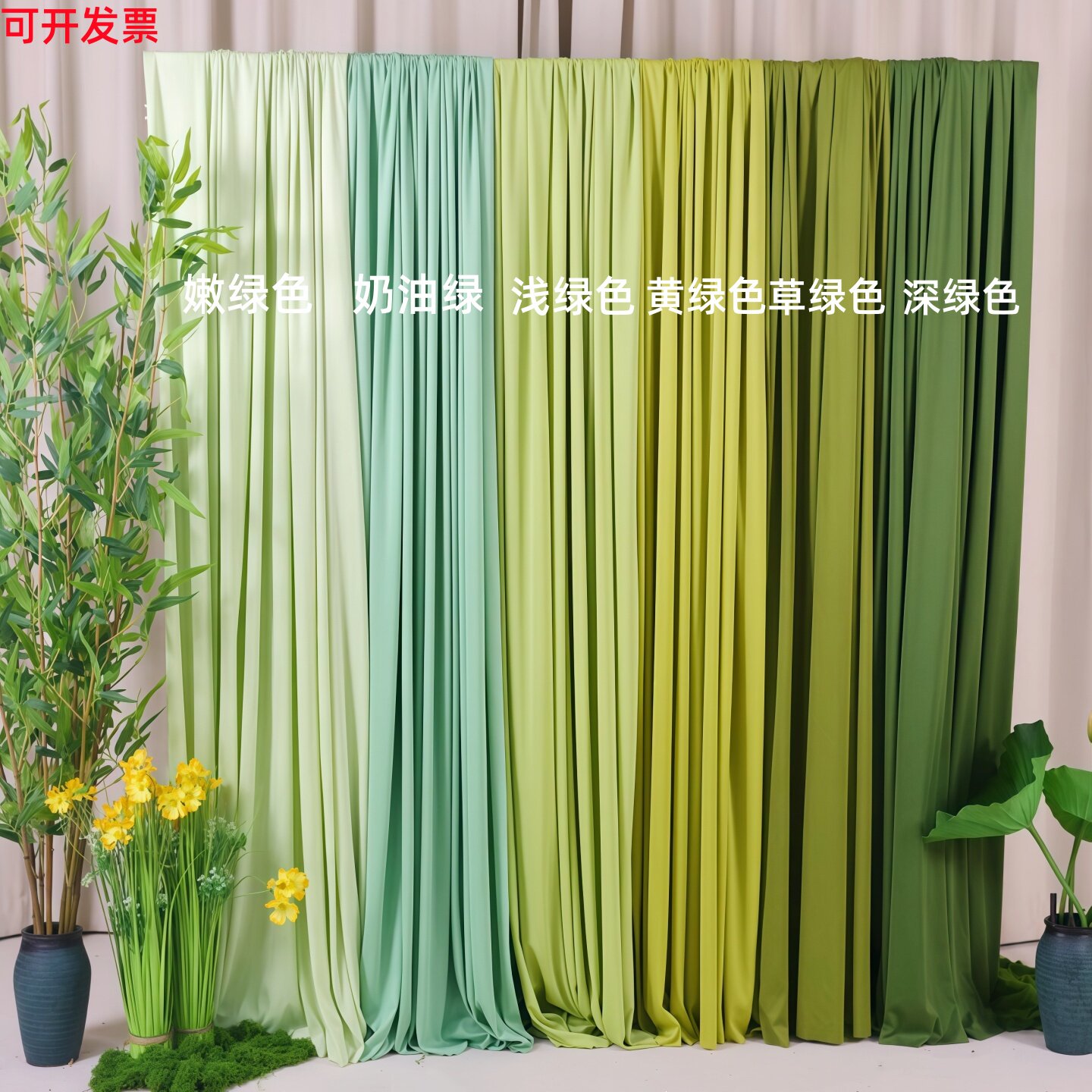 新中式绿色系布幔春天幼儿园环创场景布置背景布国风端午装饰挂布