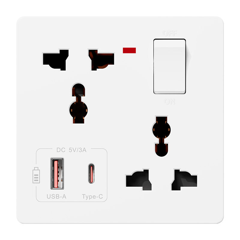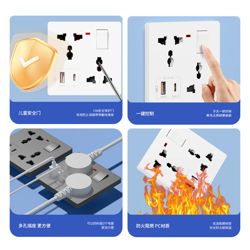 国际电工86型墙壁家用多功能六6孔五孔带开关插座面板多孔usb快充