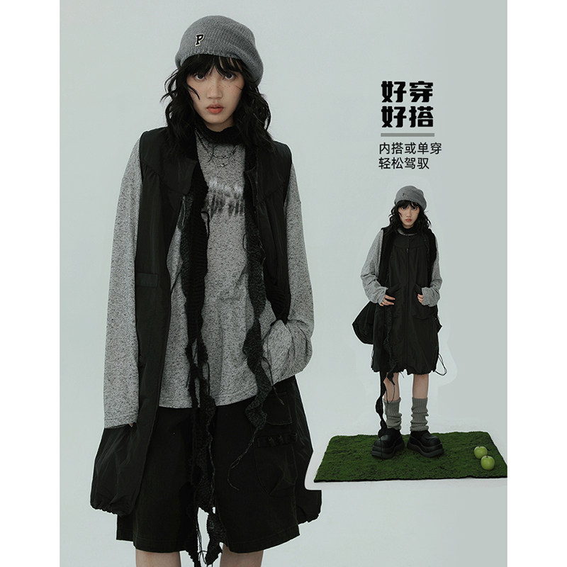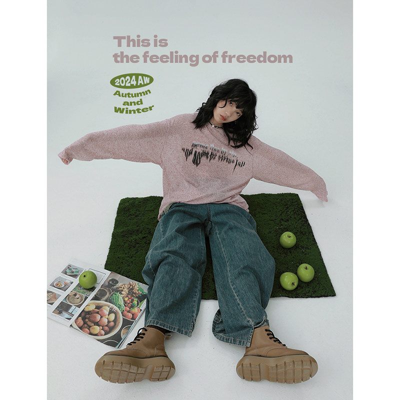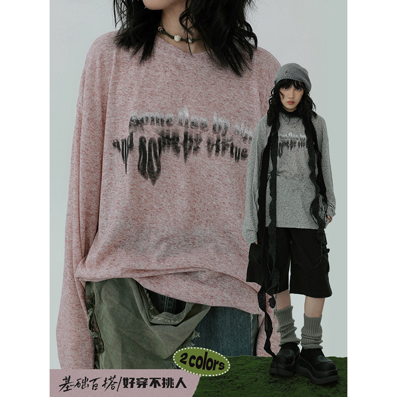 STILL YOU原创设计模糊印花杂点轻薄圆领长袖T恤女慵懒内搭打底衫