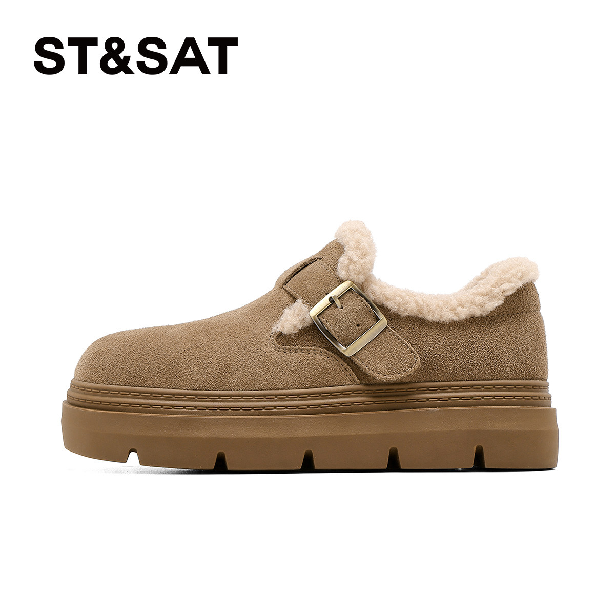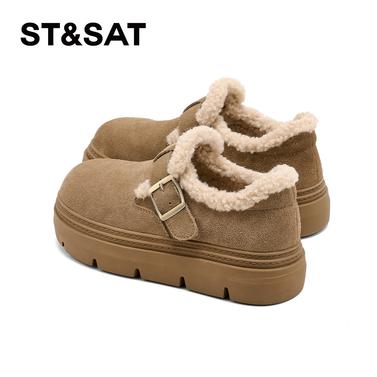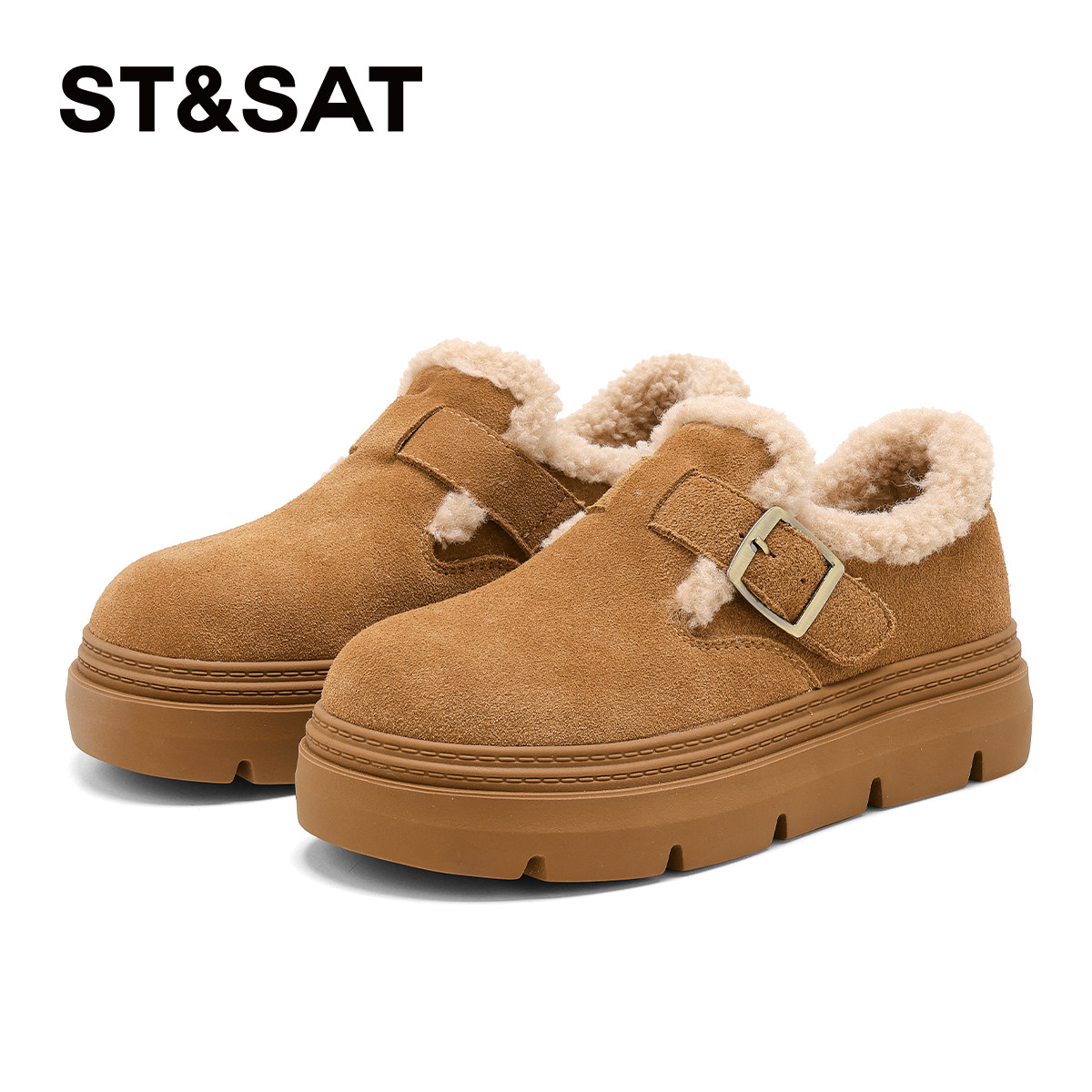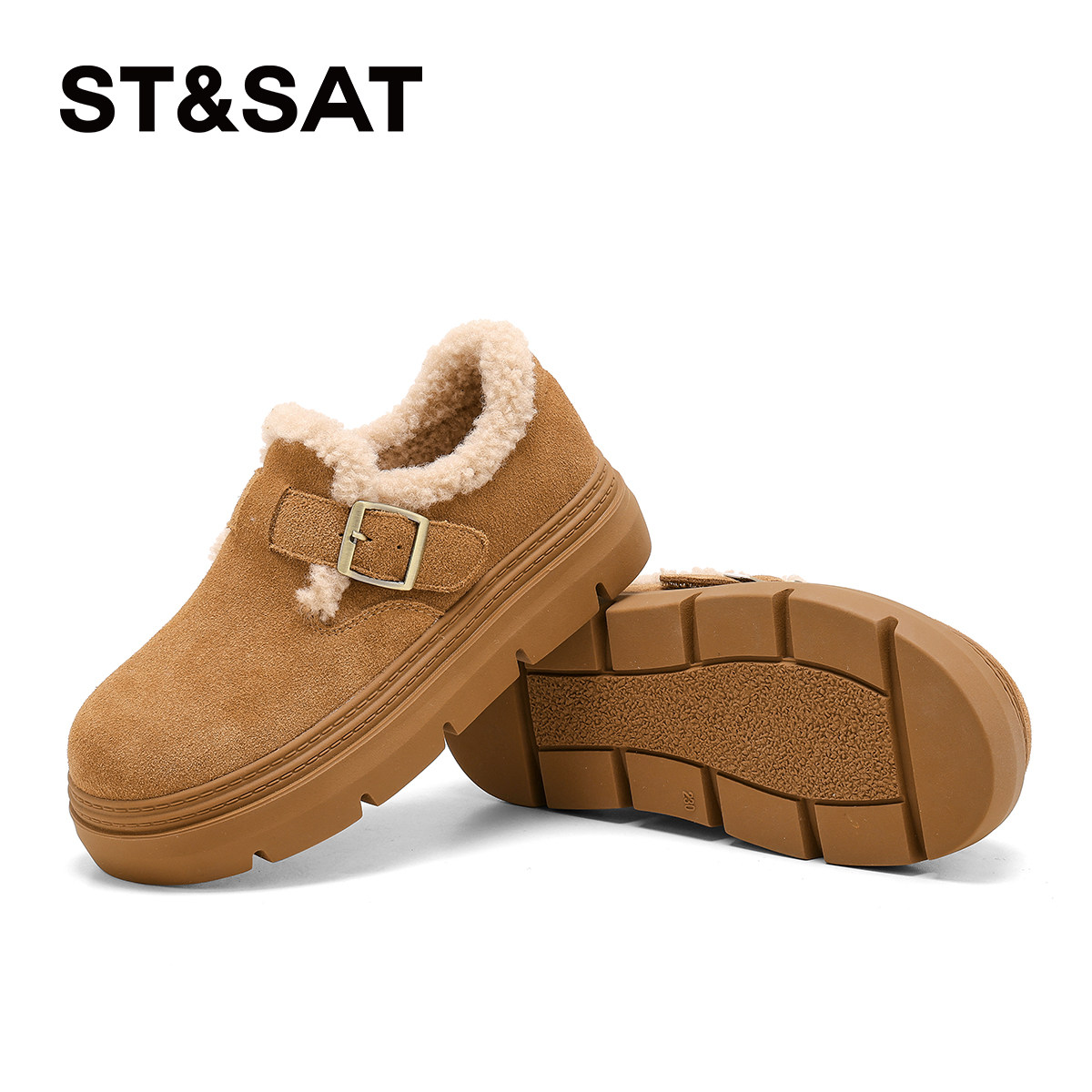 星期六加绒勃肯鞋女2025冬季新款真皮保暖雪地靴厚底增高时尚女鞋