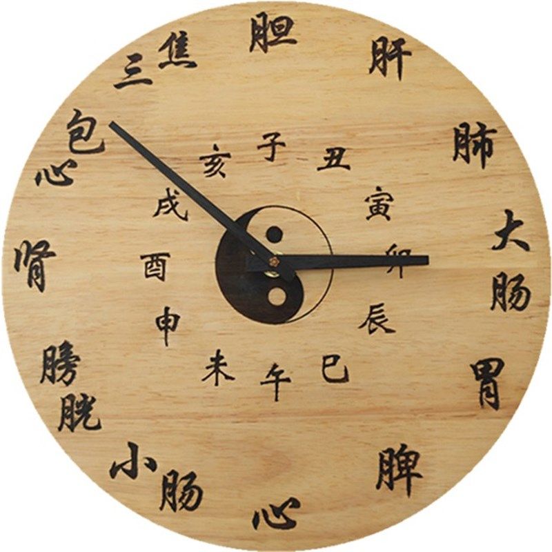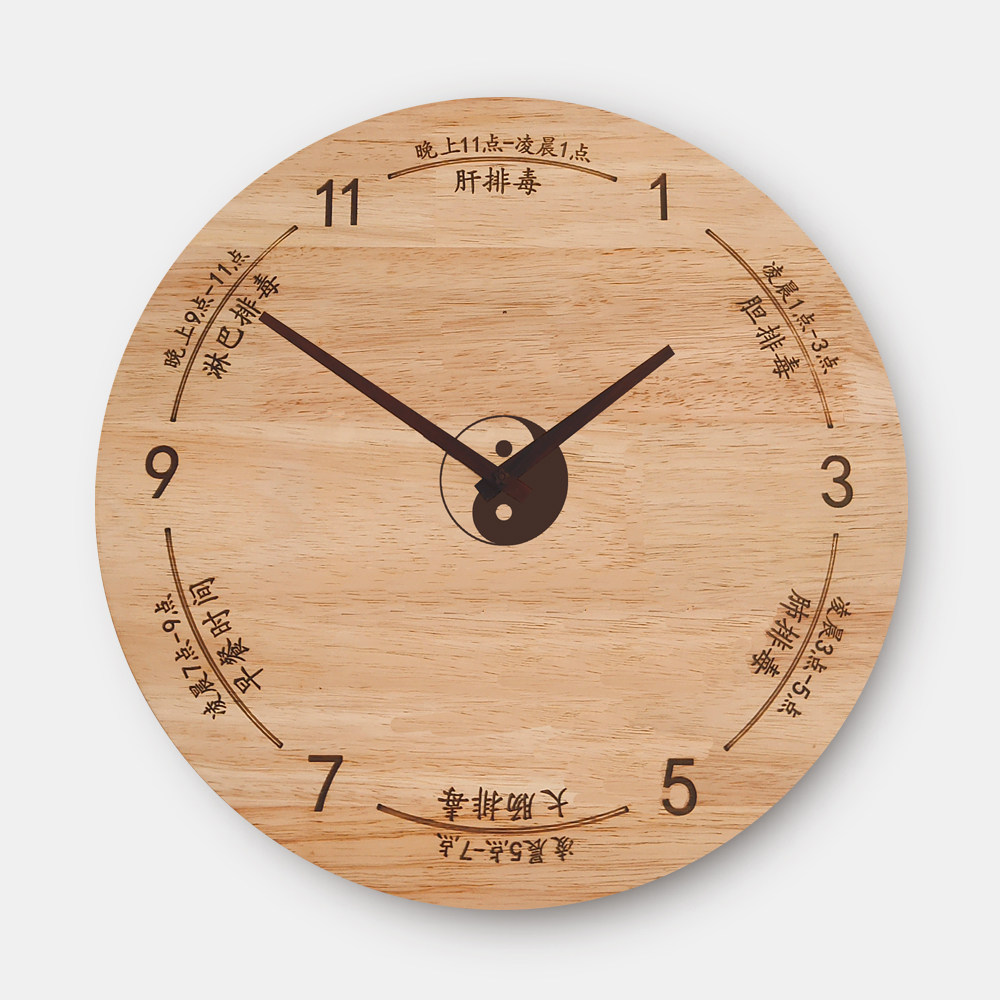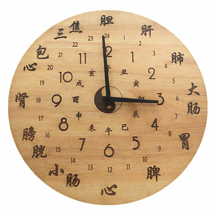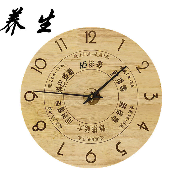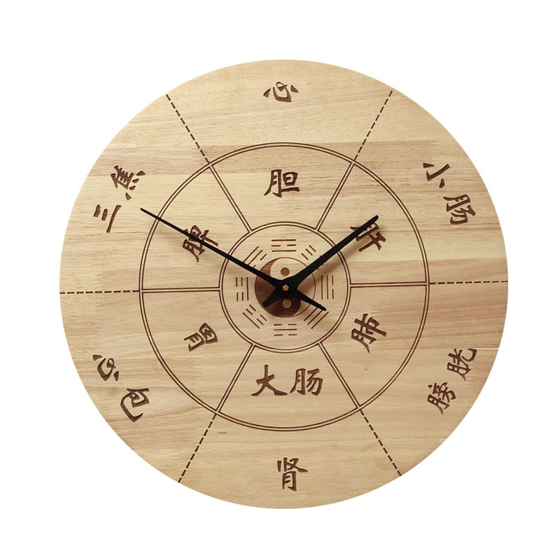 美容院中医养生挂钟创意会所子午流注经络十二时辰客厅静音木钟表