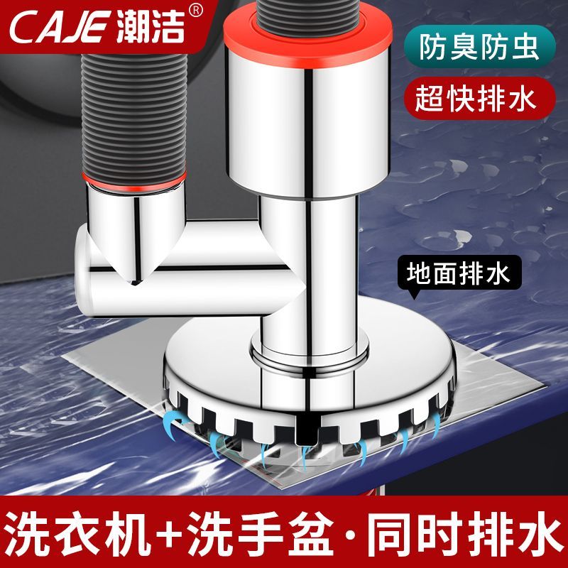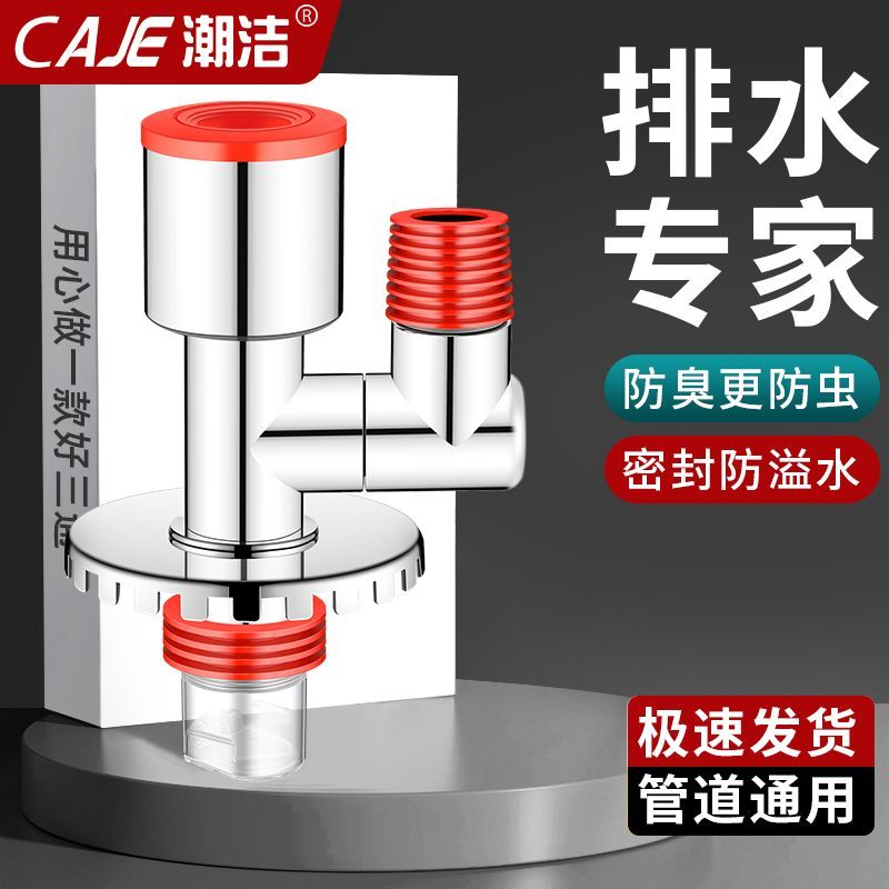 潮洁洗衣机下水三通接头排水管道专用防臭防溢水分流器水槽下水器