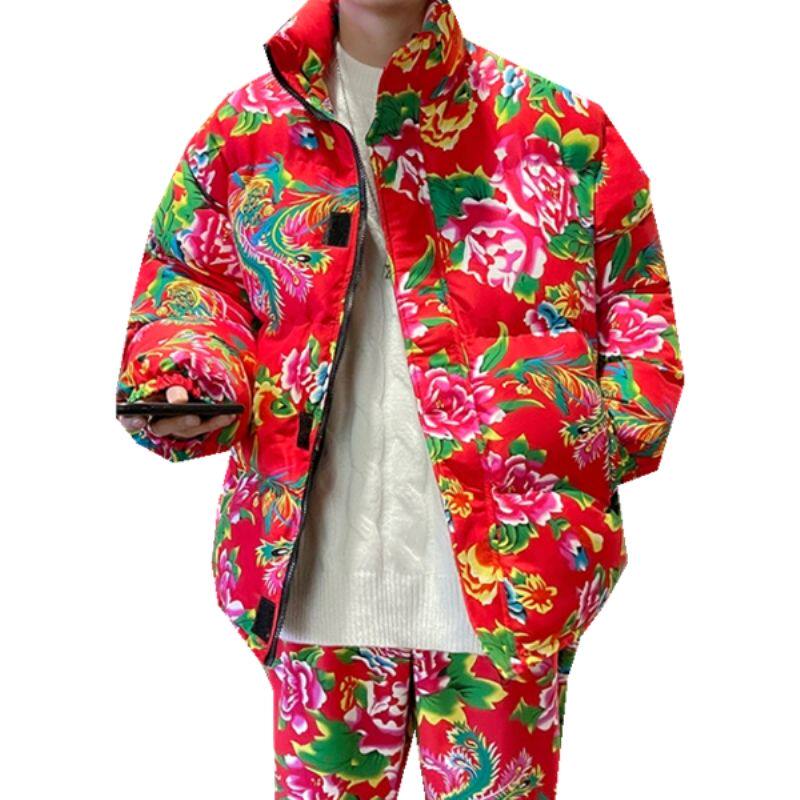 东北大花棉袄男女衣服套装棉衣冬季休闲大码加厚加绒国潮中国风