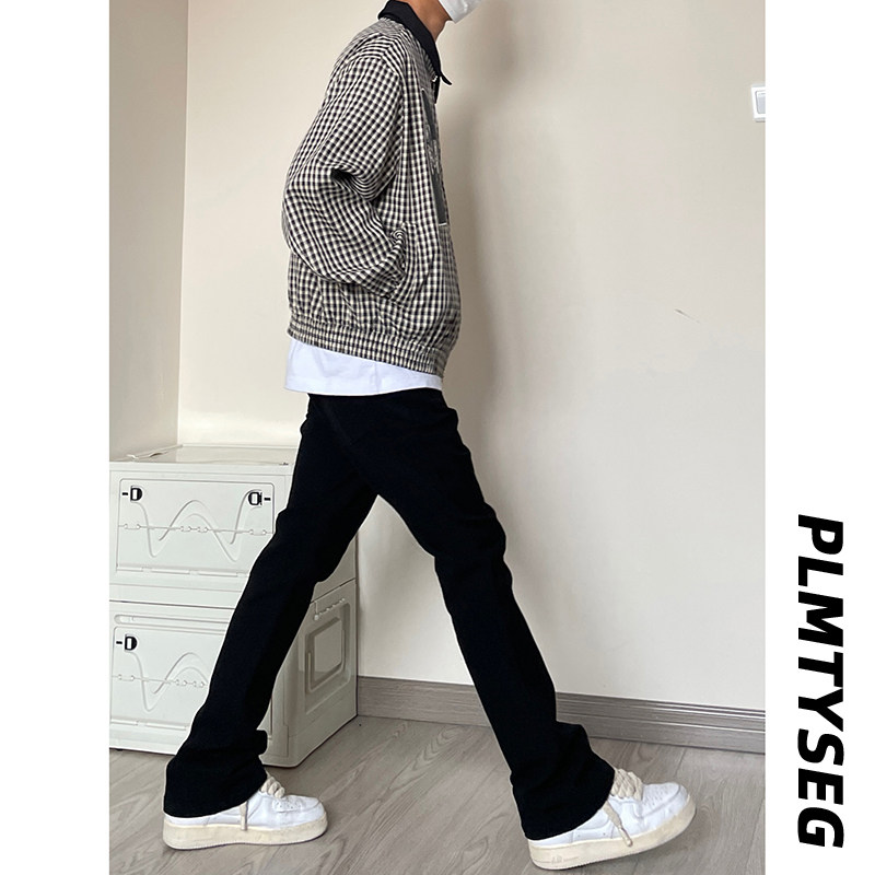 qtstudio微喇黑色牛仔裤男cleanfit直筒修身美式高街大码裤子夏季