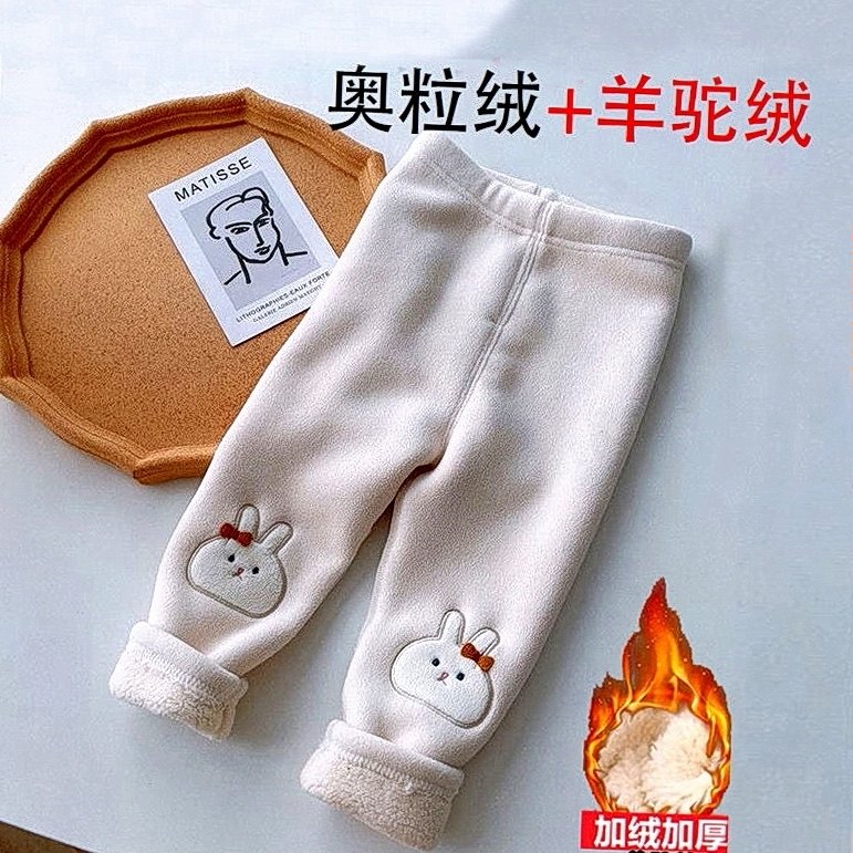 儿童2023冬季打底裤亲子裤子婴儿宝宝女童羊羔绒一体超厚