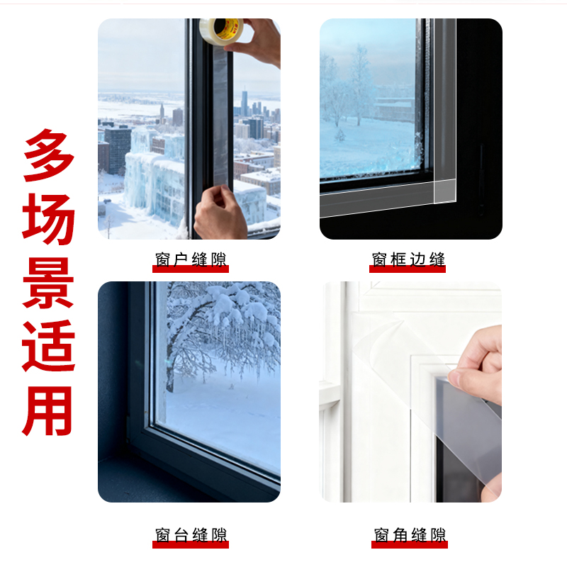 窗户防风胶带不留胶玻璃门窗缝隙防寒保暖膜防水冬季挡风专用胶条神器封窗塑钢漏风胶贴透明胶纸封窗户密封条
