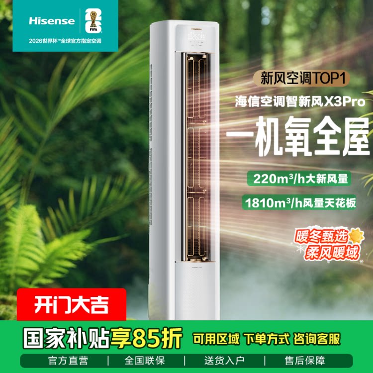新风空调X3Pro 大3匹 增氧新风AI省电 KFR-72LW/X300Pro-X1
