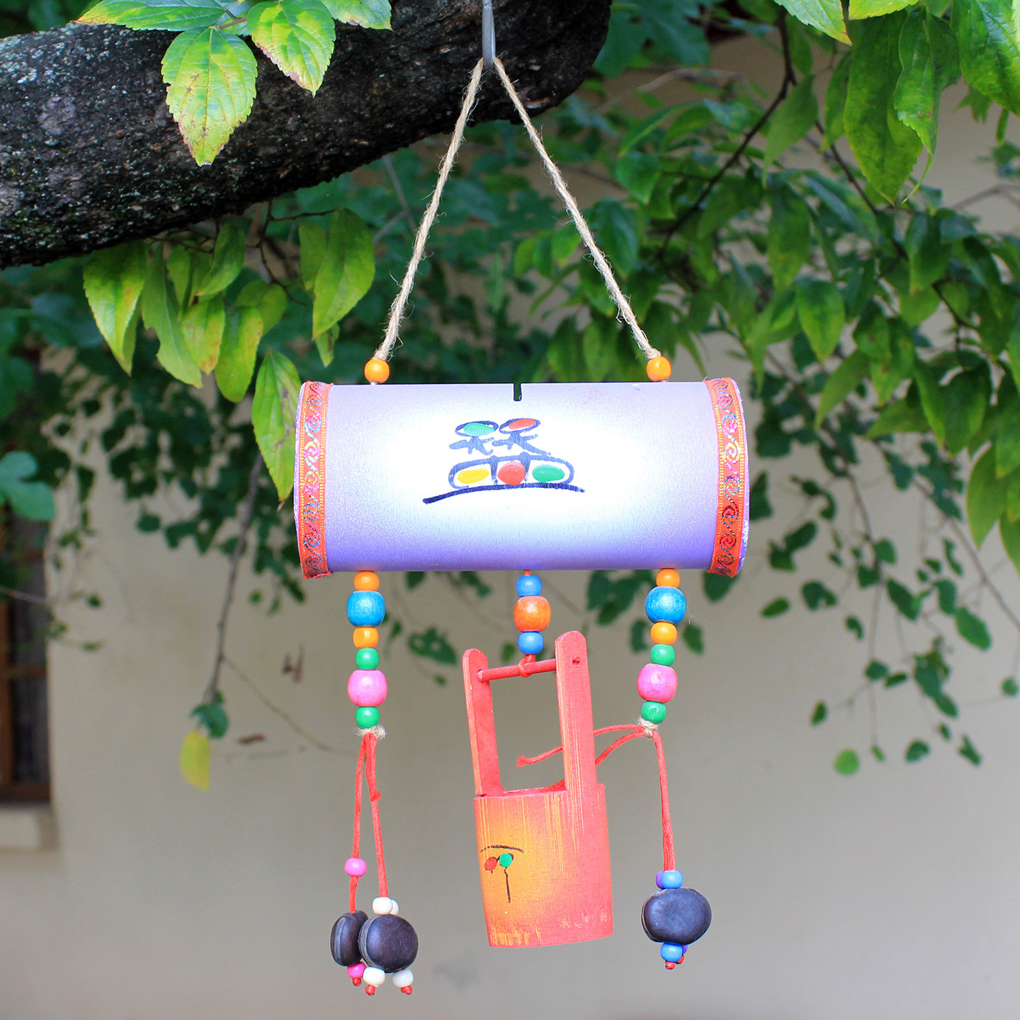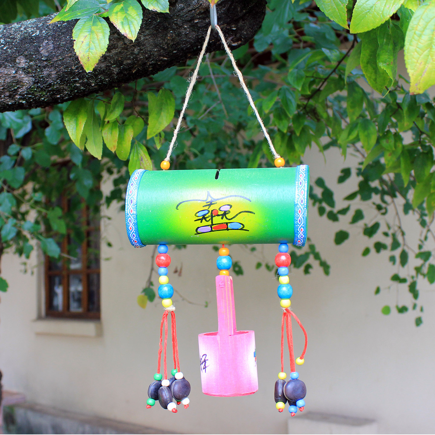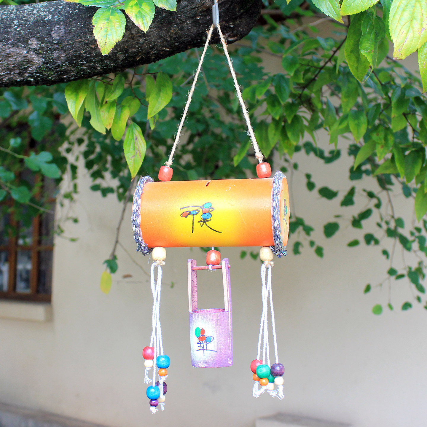 手工彩绘东巴文小水桶吊饰丽江纳西族特色装饰挂件存钱罐招财壁饰
