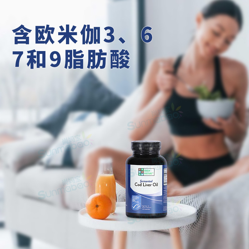美国正品Green Pasture发酵鱼肝油Omega3 维生素A/D心脏关节120粒