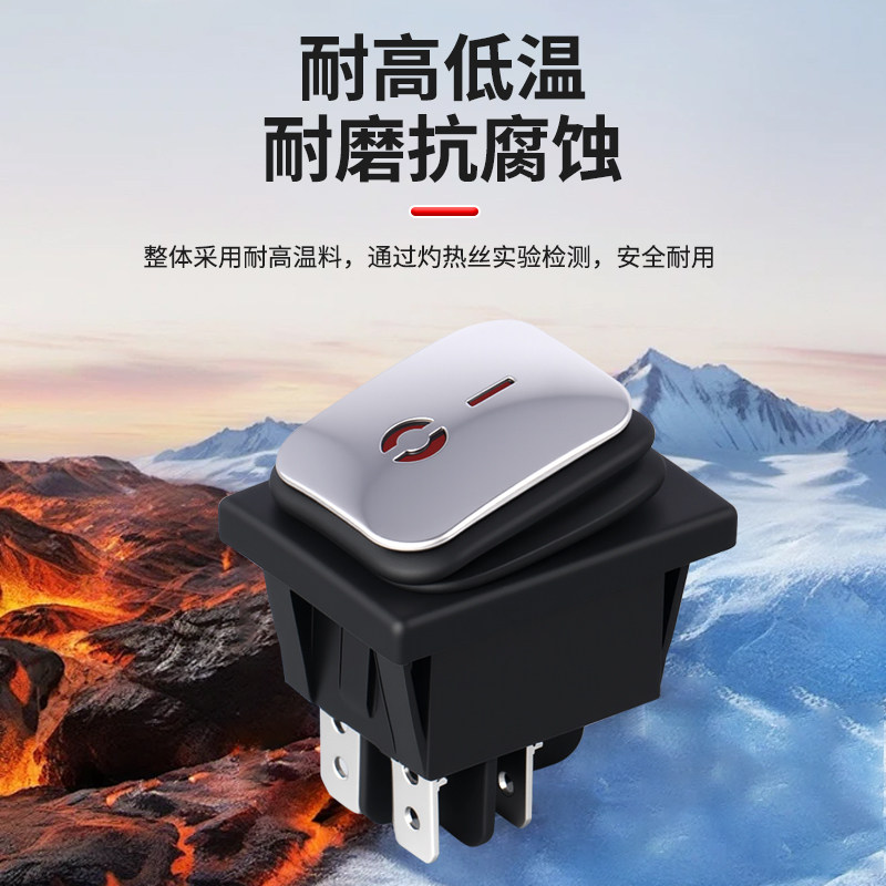 防水船型开关KCD4不锈钢面4脚带灯银点16A大电流翘板电源船形开关