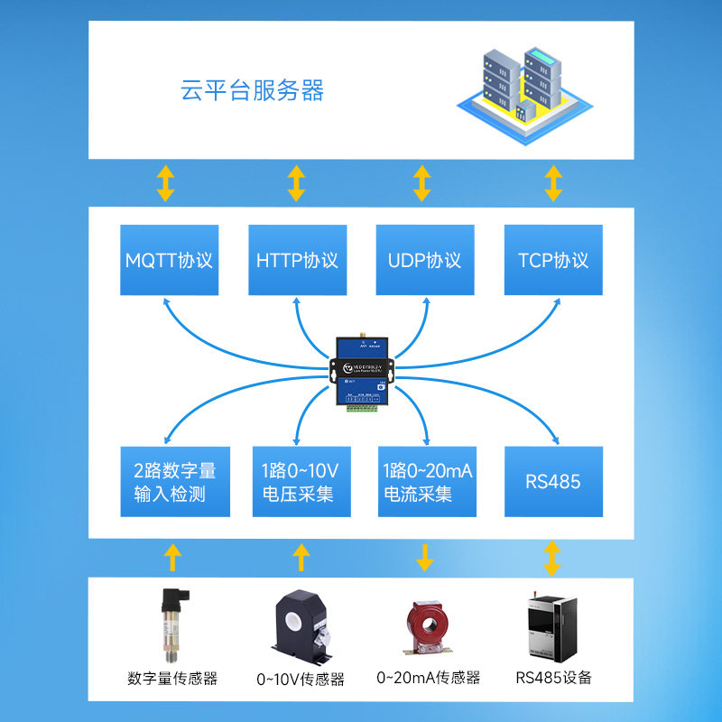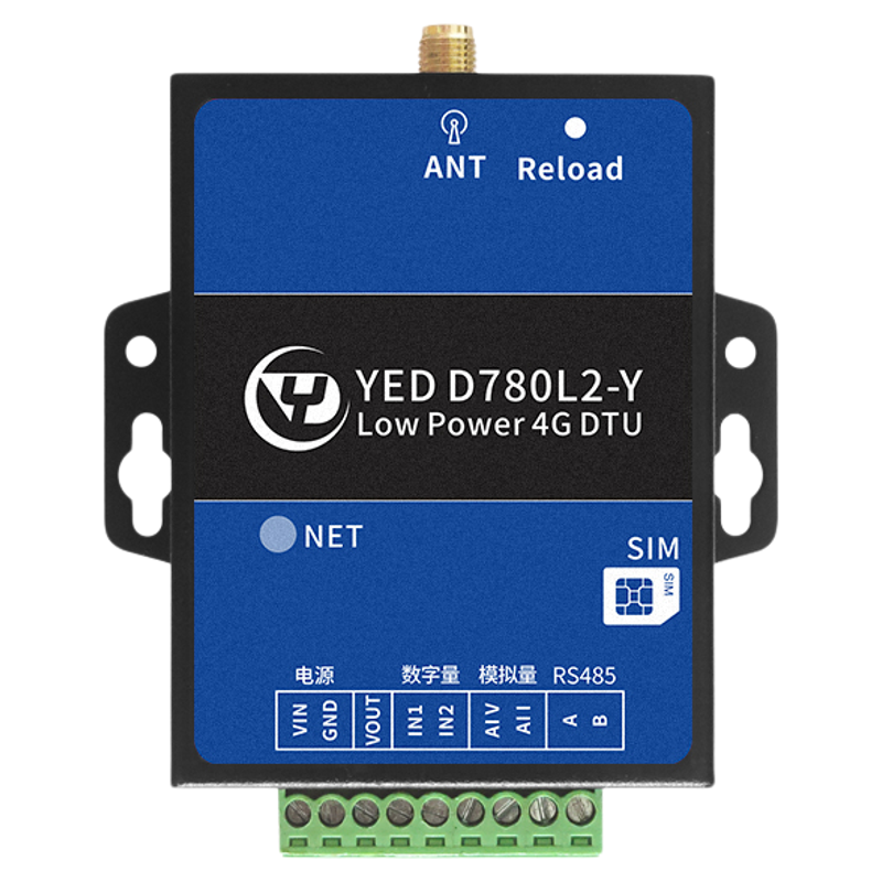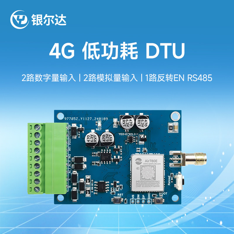 银尔达电池供电低功耗4G DTU模块一路RS485二路模拟量4-20ma输入