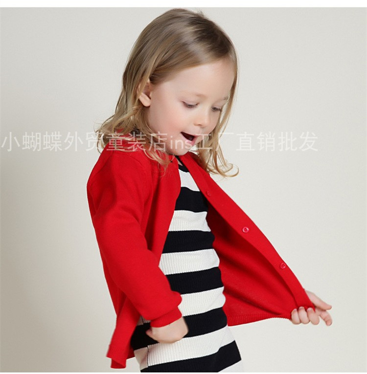 韩版女童红色针织衫新年婴儿纯棉线薄款外套男宝宝毛衣洋气亲子装