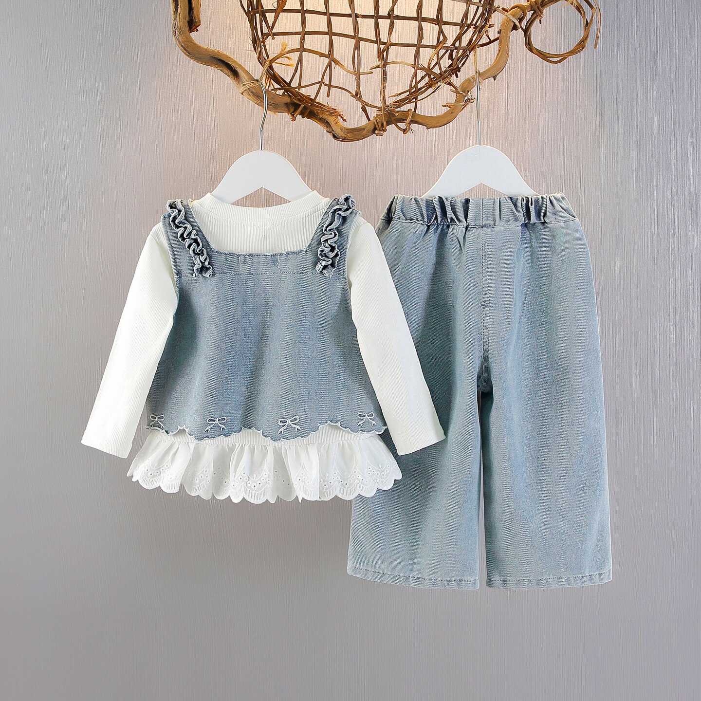 0-6岁湘雪女童春装牛仔三件套春秋季新款女宝宝洋气时髦套装新潮