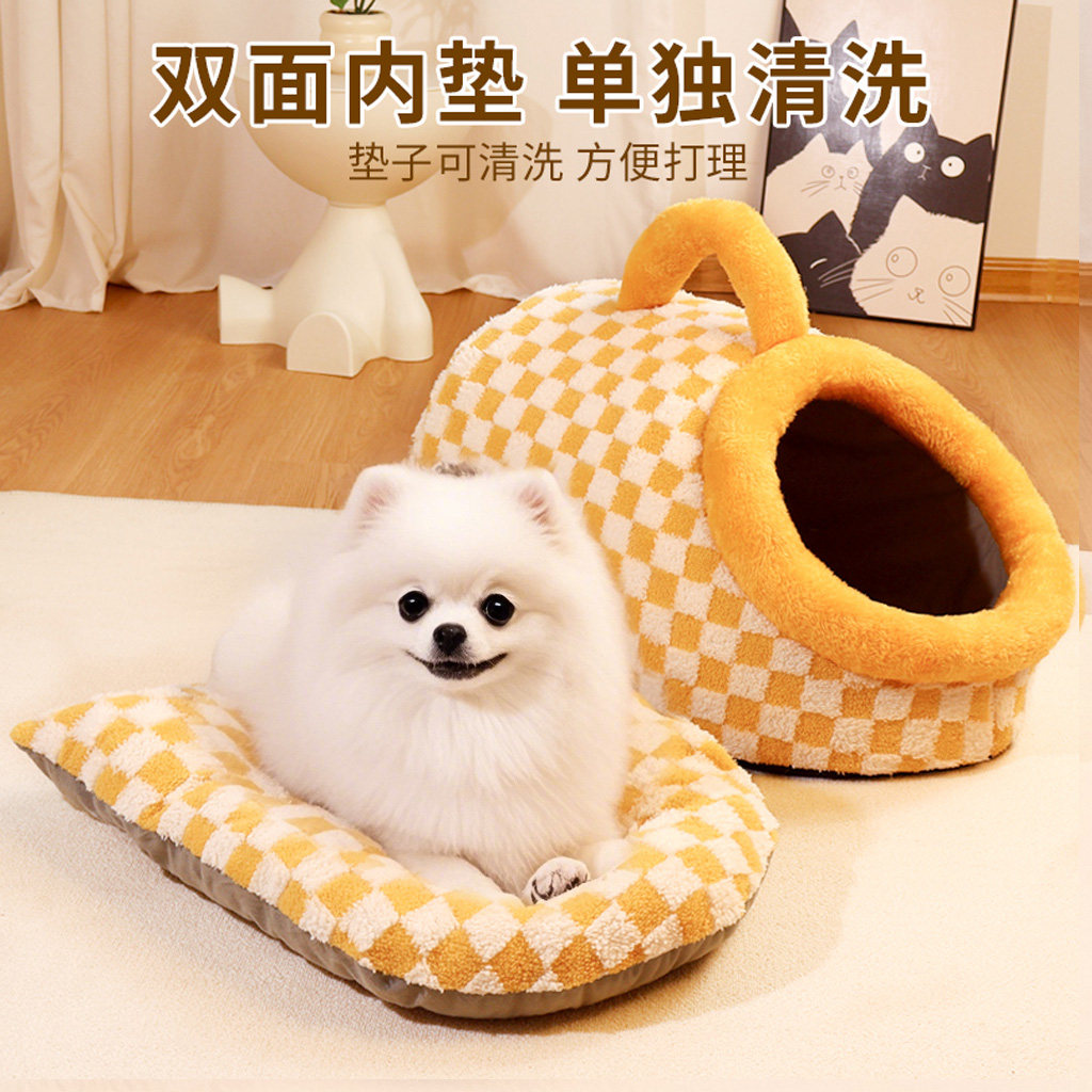 2026热卖拖鞋狗窝四季通用小型犬半封闭安全感宠物小狗睡窝睡垫床