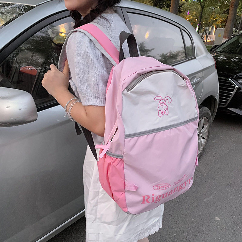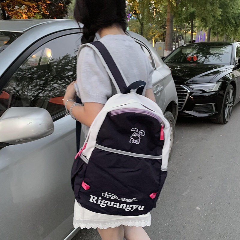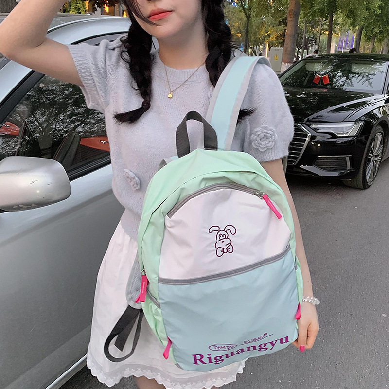 新款大容量撞色字母学生书包清新甜美百搭休闲户外旅行背包现货