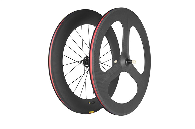 fixed gear碳纤维前三刀轮后88mm死飞轮组公路车700C开口圈刹碟刹