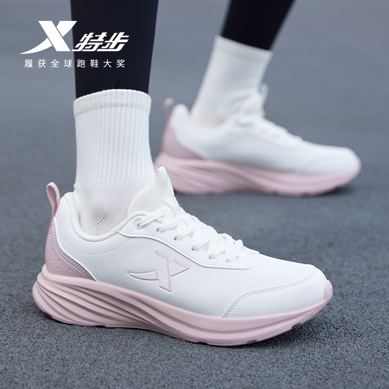 特步女鞋2025新款冬季初中学生运动鞋轻便软底皮面防水减震跑步鞋