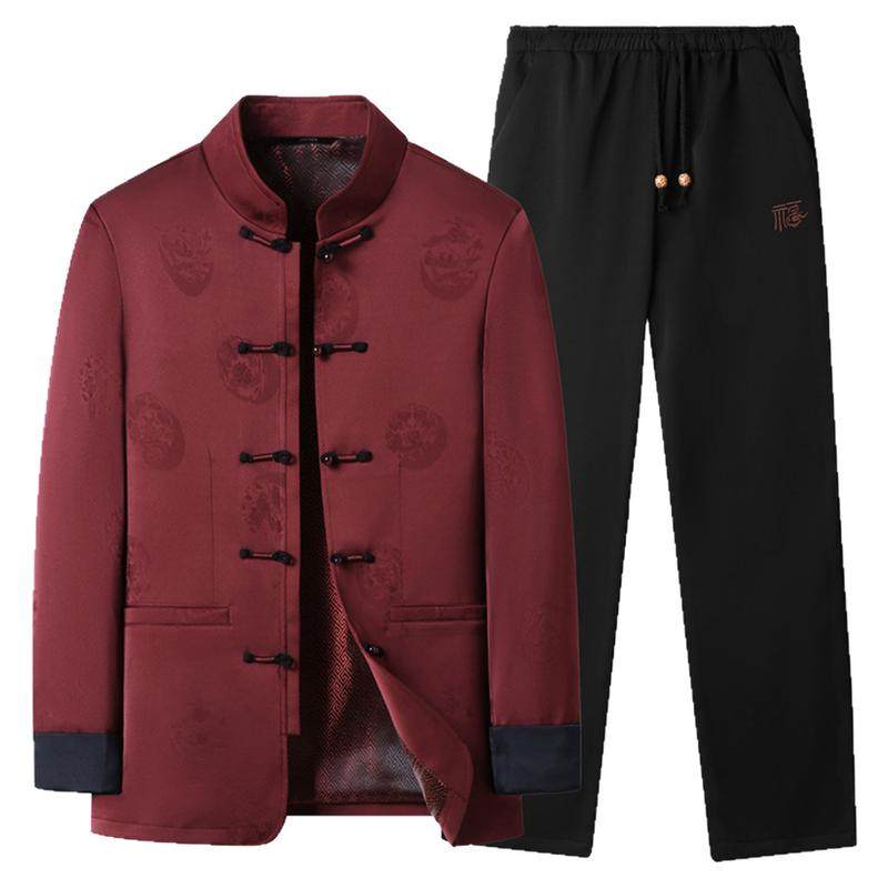 皮尔卡丹中国风唐装外套男士春秋复古中山装生日结婚礼服爸爸套装