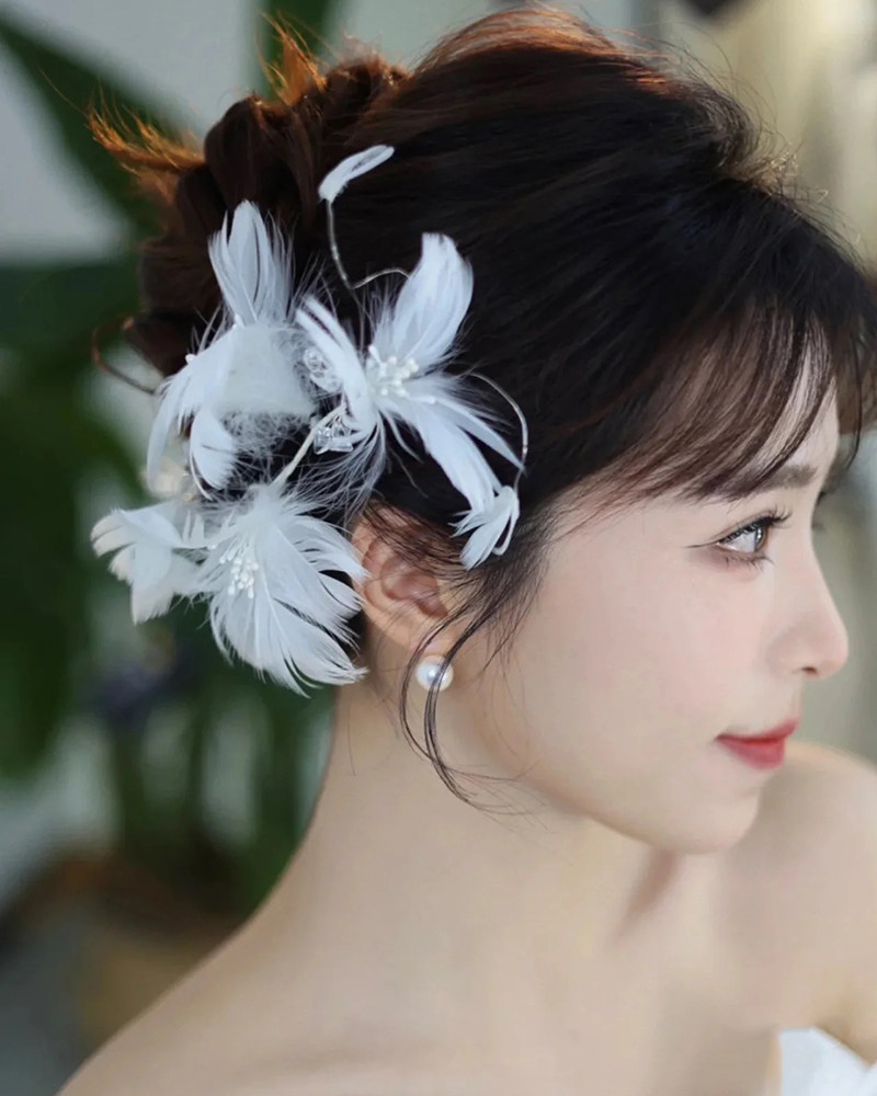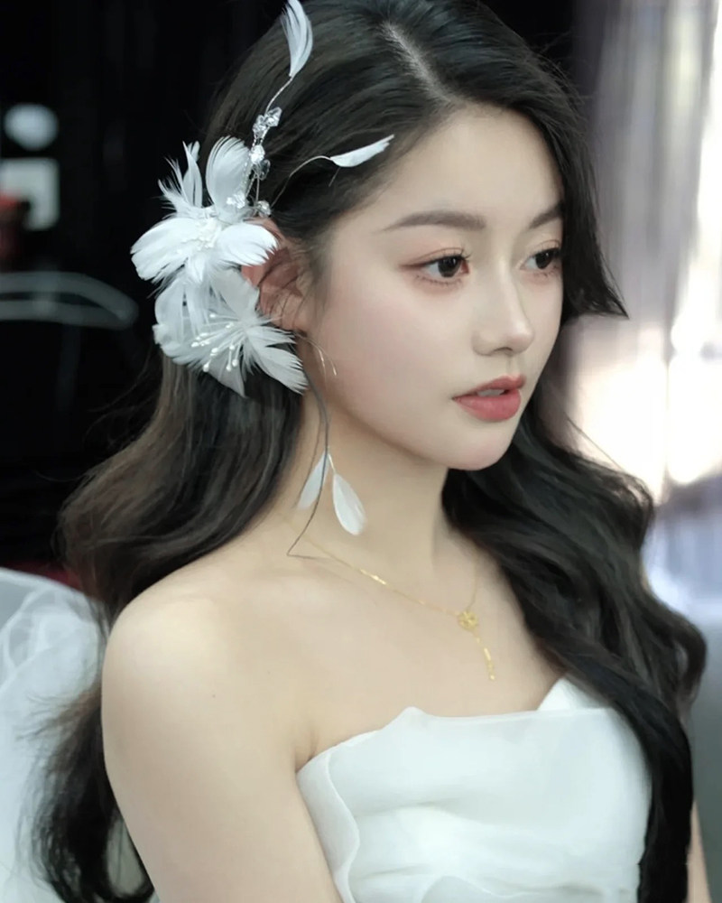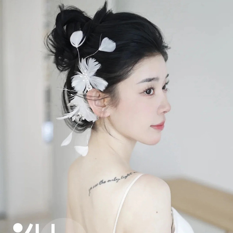 高级感仙气新娘羽毛耳挂头饰时尚气质简约公主头花结婚纱礼服配饰