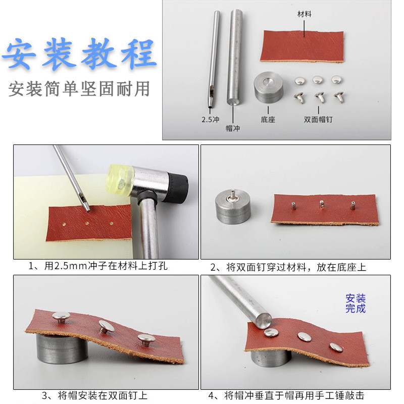 平面金属双面铆钉皮具箱包五金配件配打孔安装工具盒装子母钉撞钉