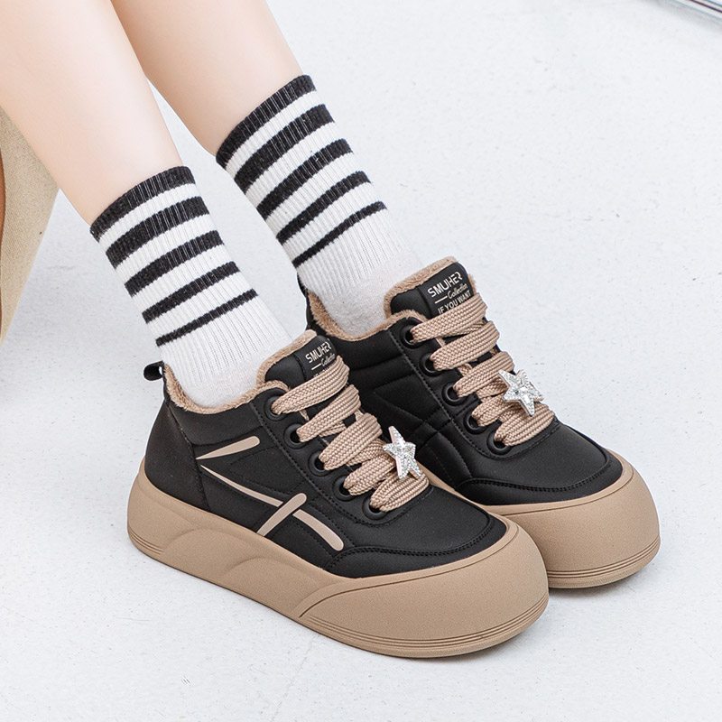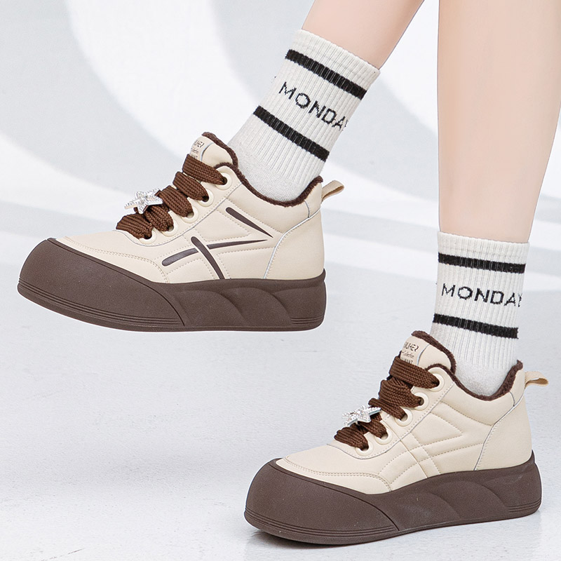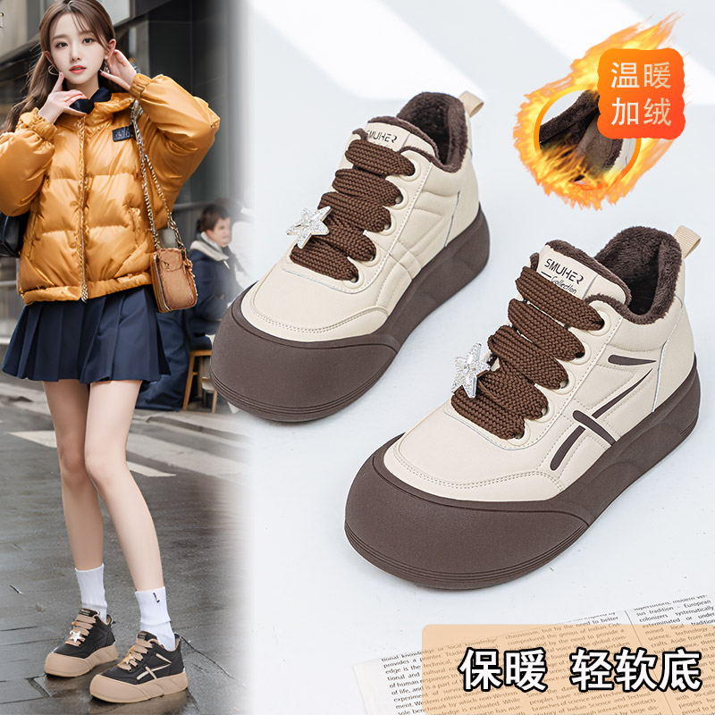 厚底轻鞋底大码面包鞋女41到43冬加绒保暖圆头高帮鞋宽脚休闲板鞋