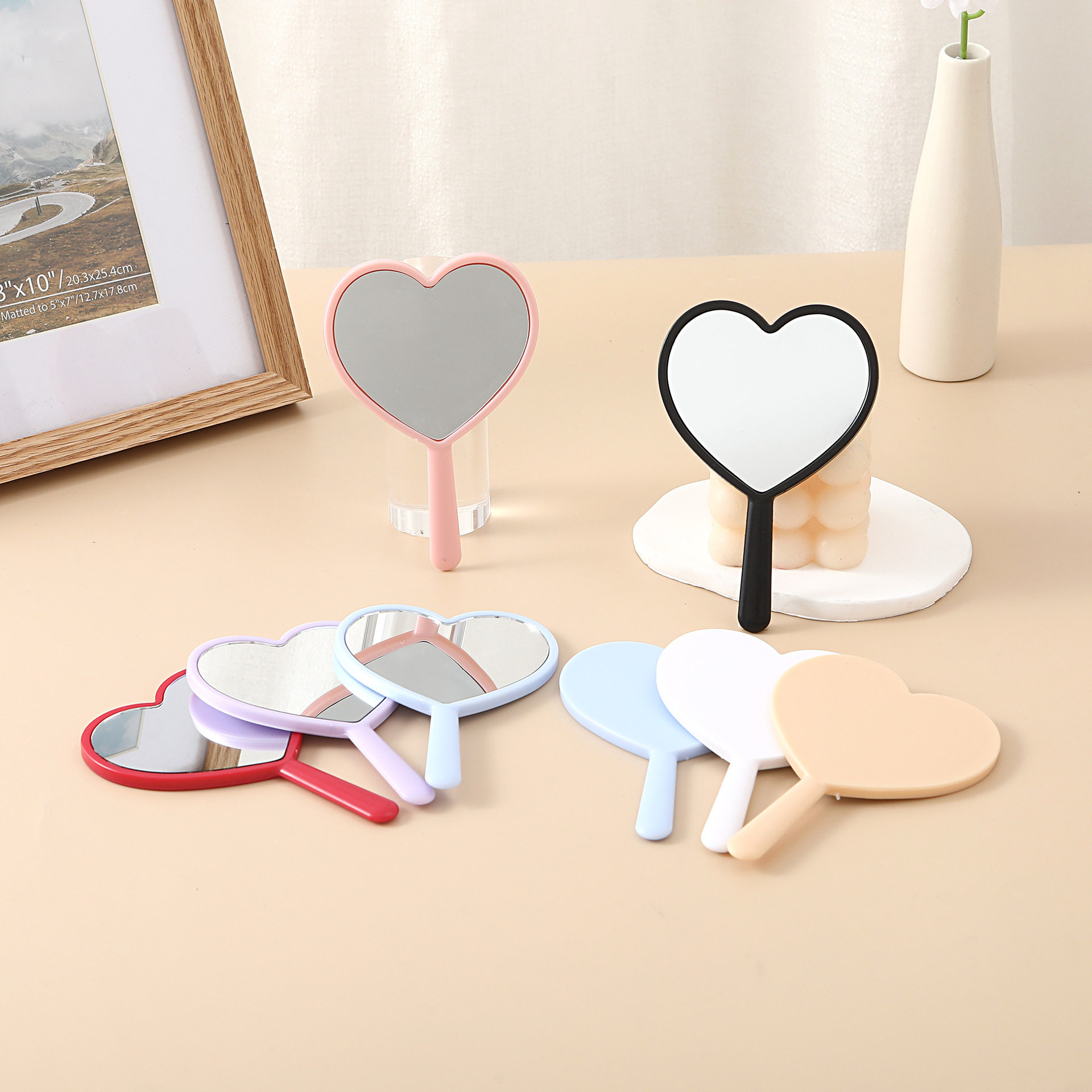 爱心手持镜来图定制印logo物料礼品DIY广告小镜子桃心手柄化妆镜