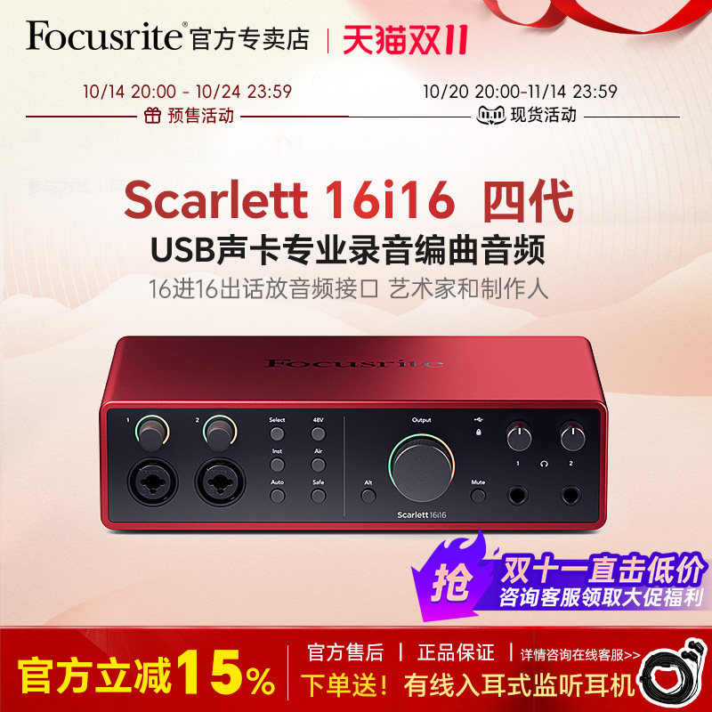 Focusrite福克斯特Scarlett 8i6/16i16 USB声卡专业录音编曲音频