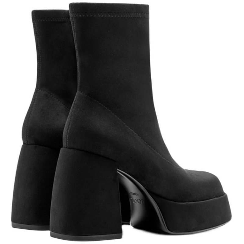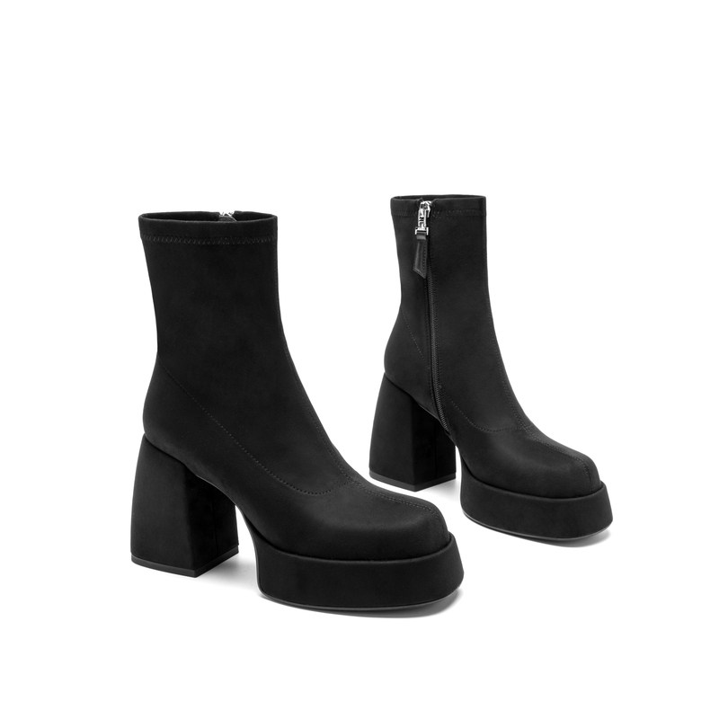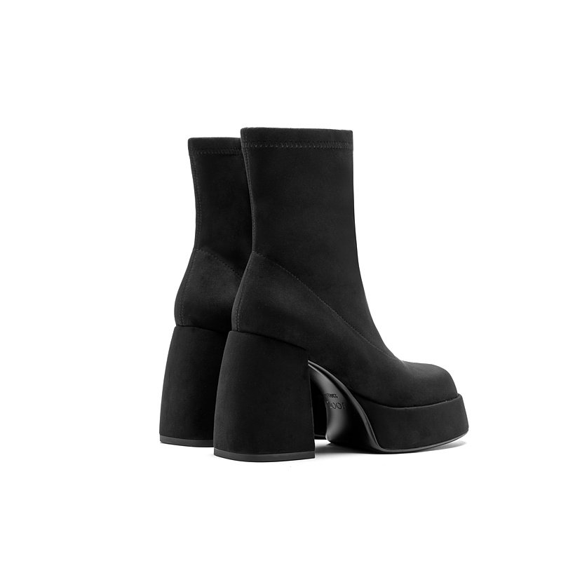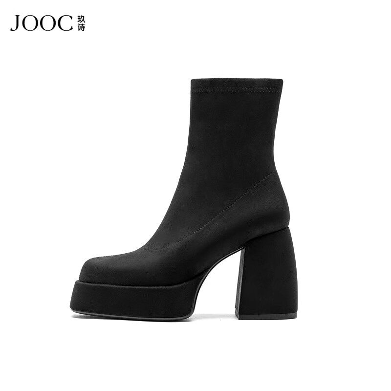 JOOC玖诗粗跟弹力靴女秋冬新款黑色短靴气质防水台袜靴瘦瘦靴