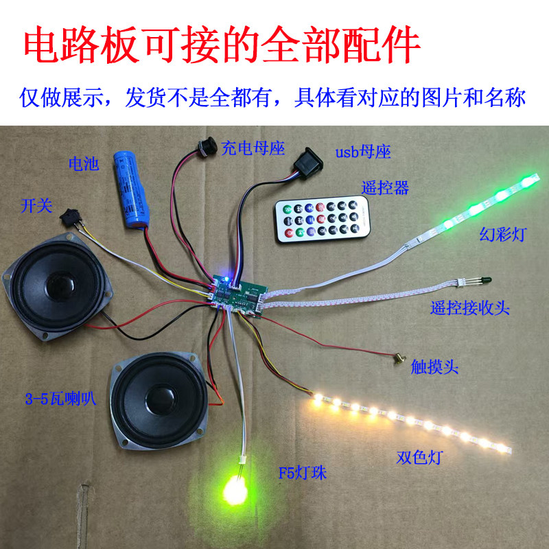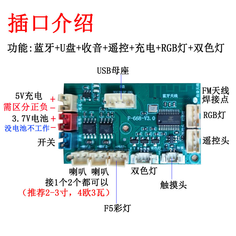 蓝牙模块功放板音响电路板音频解码立体声酒瓶音箱LA25幻彩灯遥控