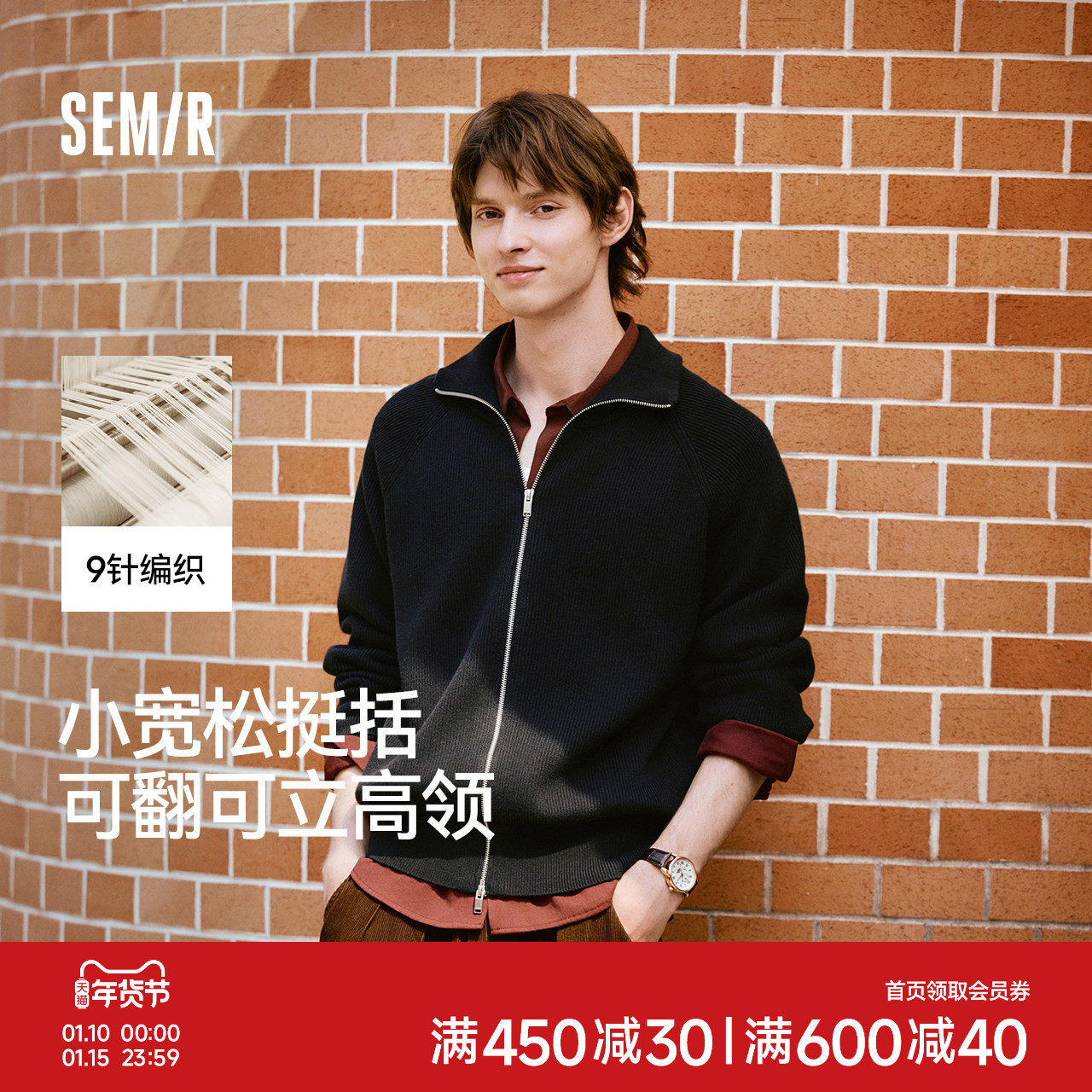 森马针织衫男高领毛衫情侣款开衫外套可内搭秋季上衣纯色基础百搭