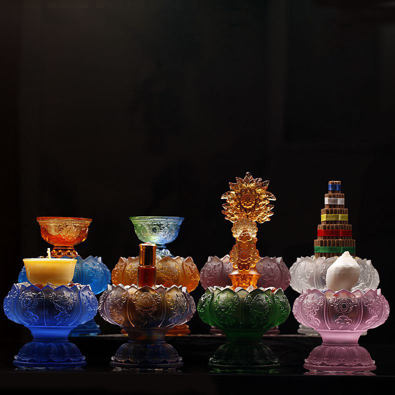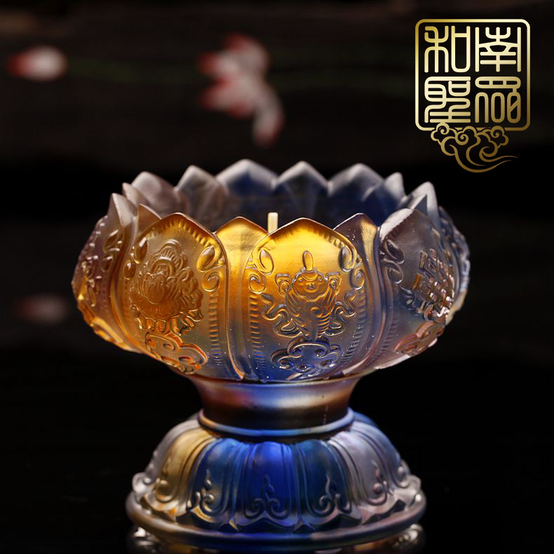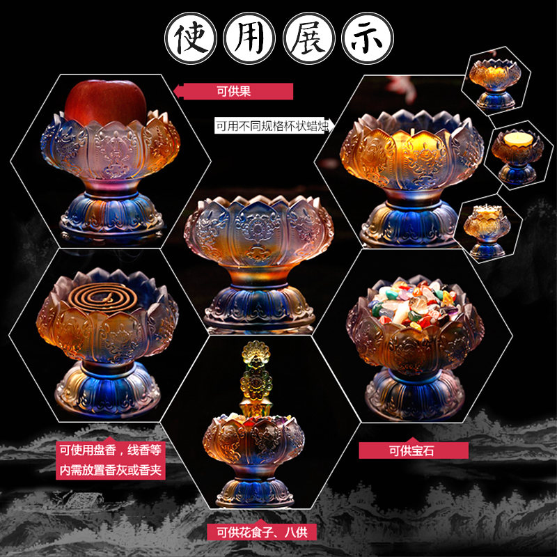 佛家圣物佛堂八吉祥供水杯酥油灯座莲花烛台七宝琉璃供碗摆件包邮