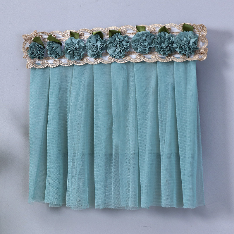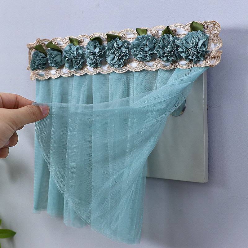 蕾丝花边万能盖巾蓝色网纱百搭装饰遮盖帘