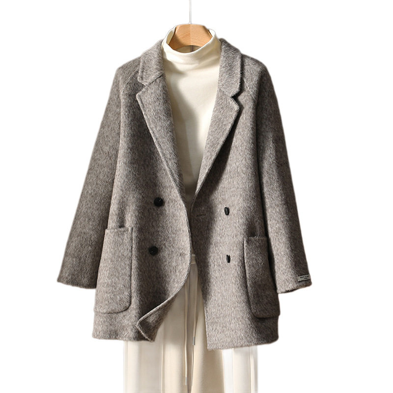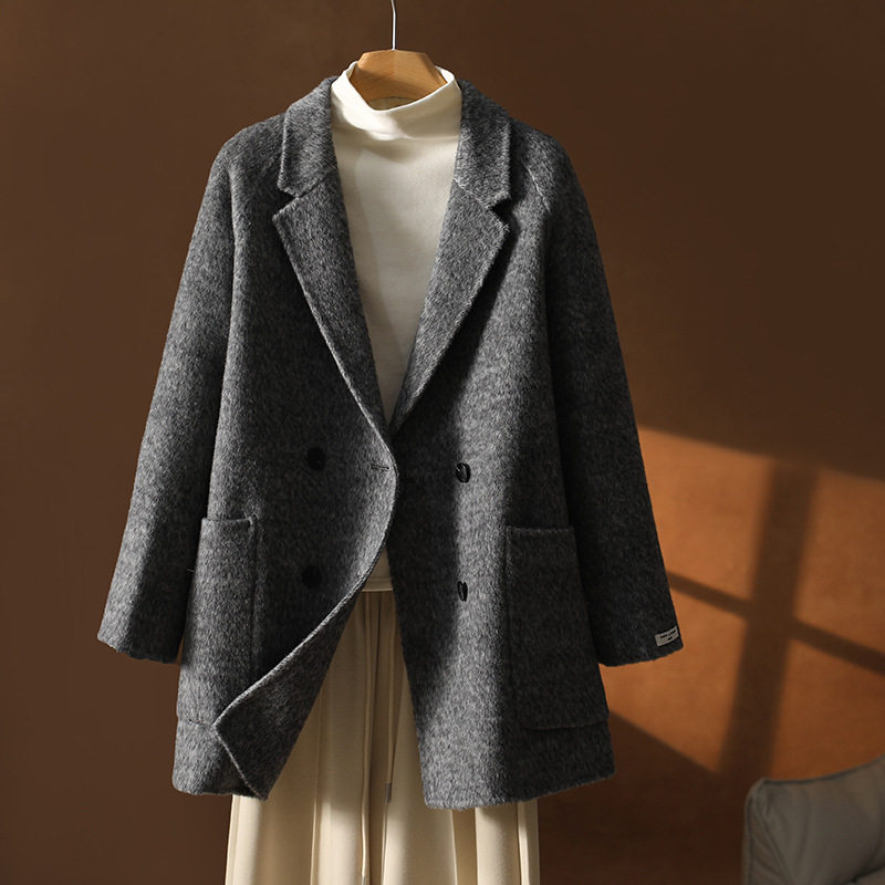 2025秋冬季新款双面羊绒大衣中长款西装领女式纯羊毛毛呢外套简约