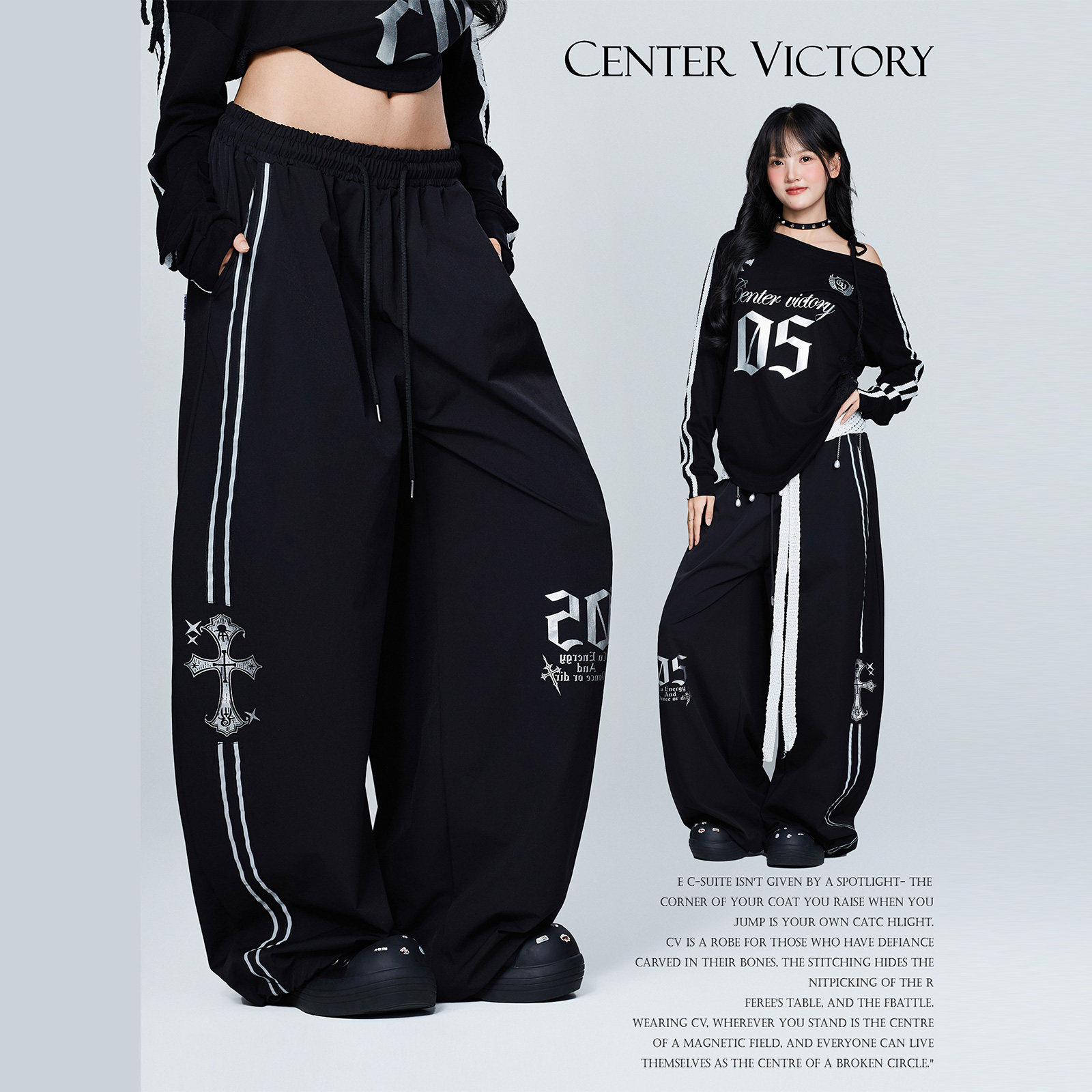 CV新广场舞潮牌新款"哥特套装"跳舞宽松罩衫长袖宽松时尚运动裤