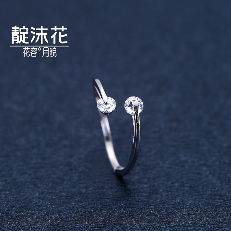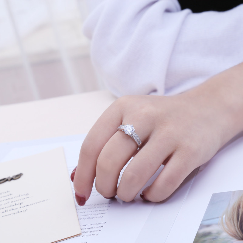 s925纯银经典锆石戒指仿真订婚钻戒结婚指环时尚食指戒子尾戒饰品