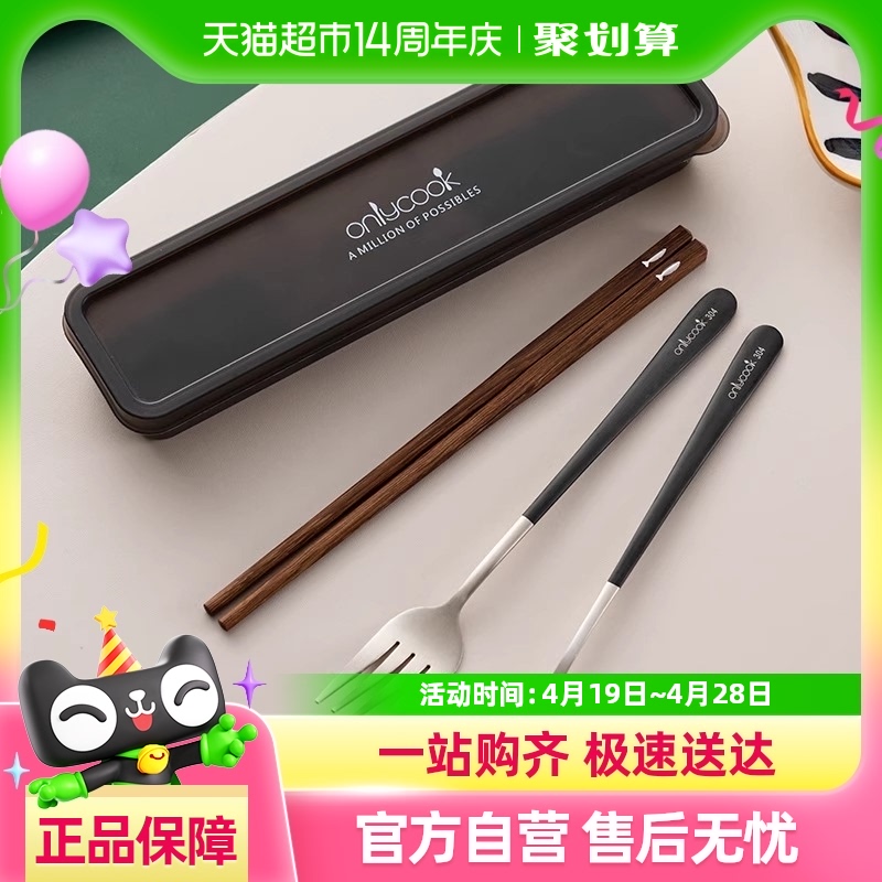 onlycook 304不锈钢筷勺套装木筷子勺子叉子学生便携餐具盒一人用