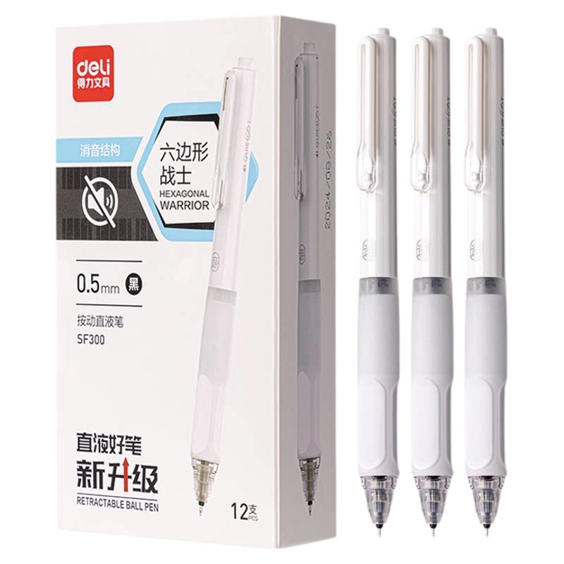 得力六边形战士ST头直液笔考试自习室图书馆静音减震多握感速干双珠球备考刷题考研考公用笔不累手马龙同款