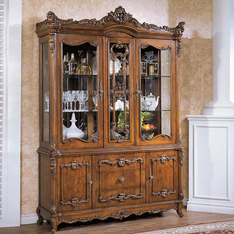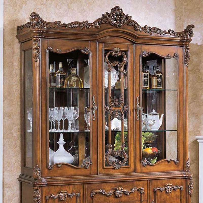 欧式拆装三门酒柜家用高端玻璃门展示柜子美式复古做旧饰品柜定制