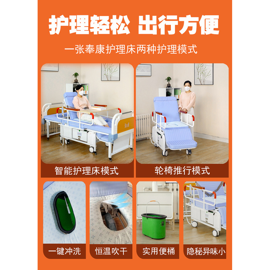 电动护理床家用多功能瘫痪老人大小便冲洗烘干病人医疗分离轮椅床