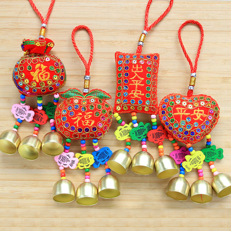 春节用品铃铛中国结福袋香囊吊饰挂件刺绣福袋礼品挂饰汽车挂件