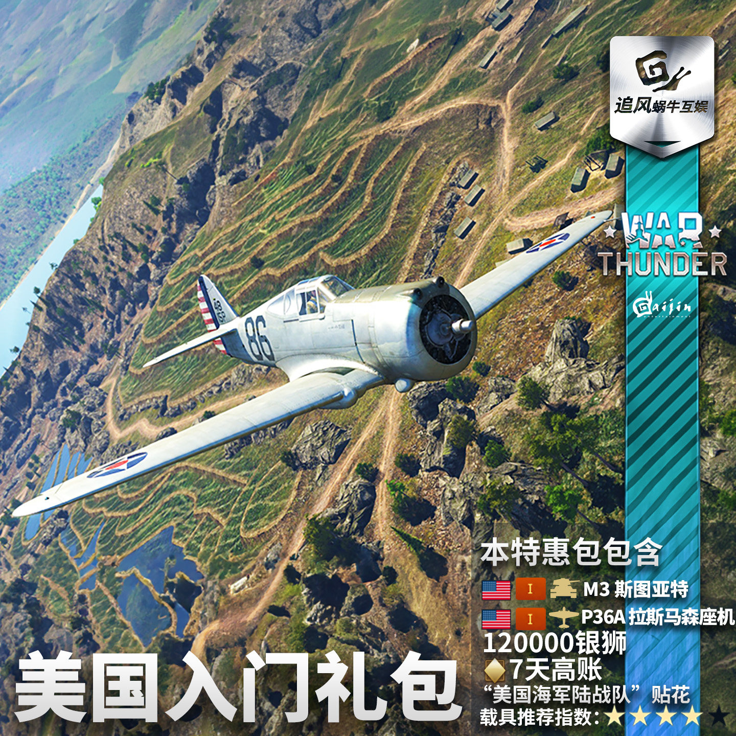 Warthunder 战争雷霆 美系 US Starter 新手 礼包 M3A1 P36A